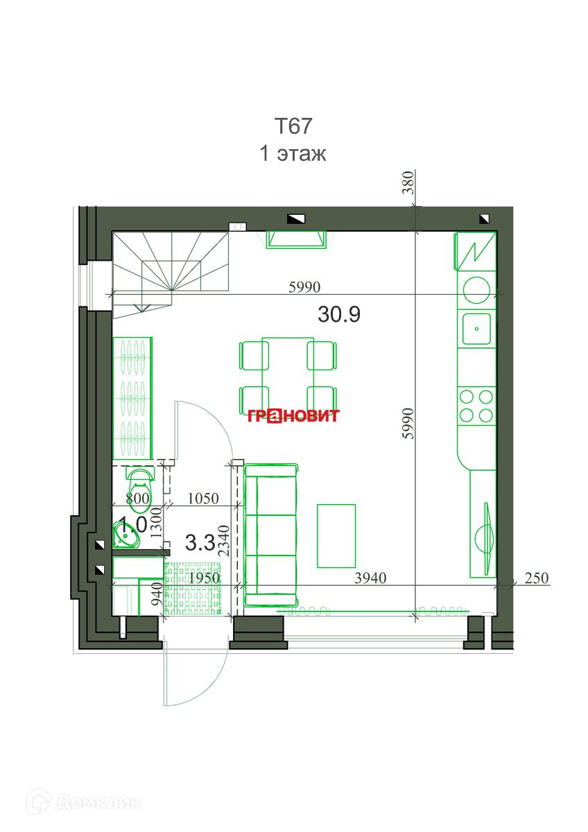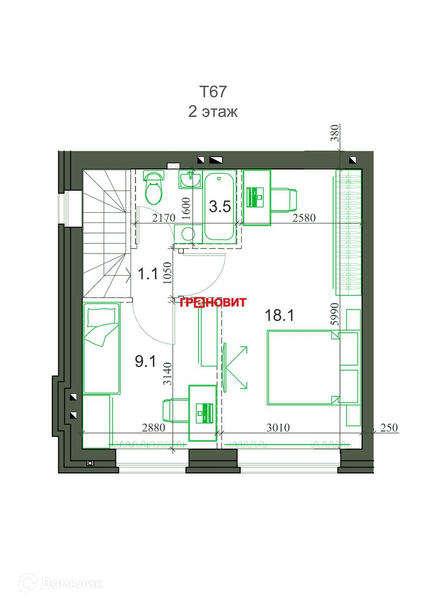 2-этажный таунхаус, 65.42 м2, на продажу в поселке Садовом, коттеджный посёлок Берёзки-Садовый, 1