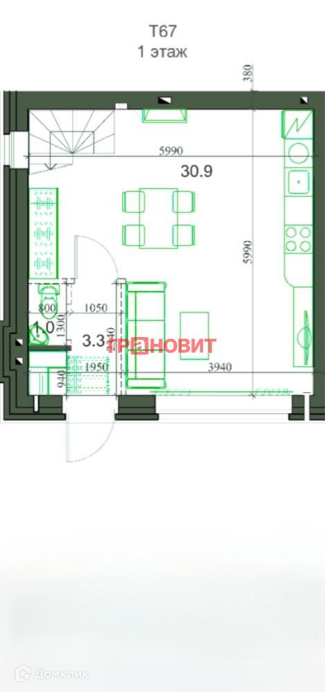 2-этажный таунхаус, 65.42 м2, на продажу в поселке Садовом, микрорайон Берёзки-3, 5