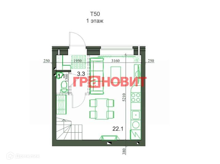 2-этажный таунхаус, 48.72 м2, на продажу в поселке Садовом, микрорайон Берёзки-3, 3
