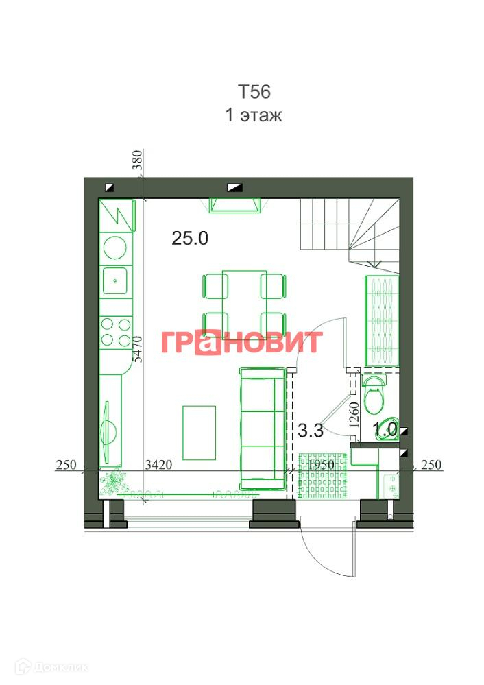 Общая площадь 55 м2