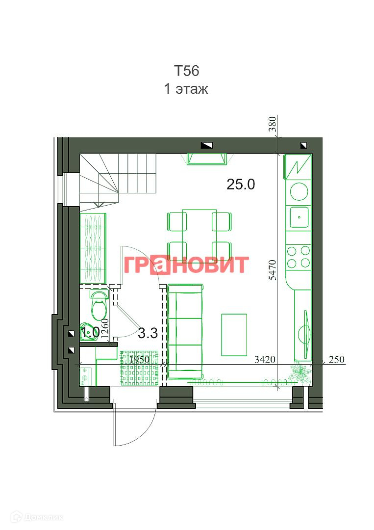Общая площадь 54.1 м2