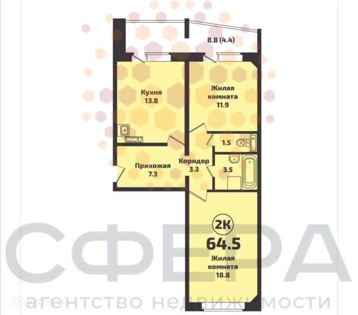 Общая площадь 63 м2