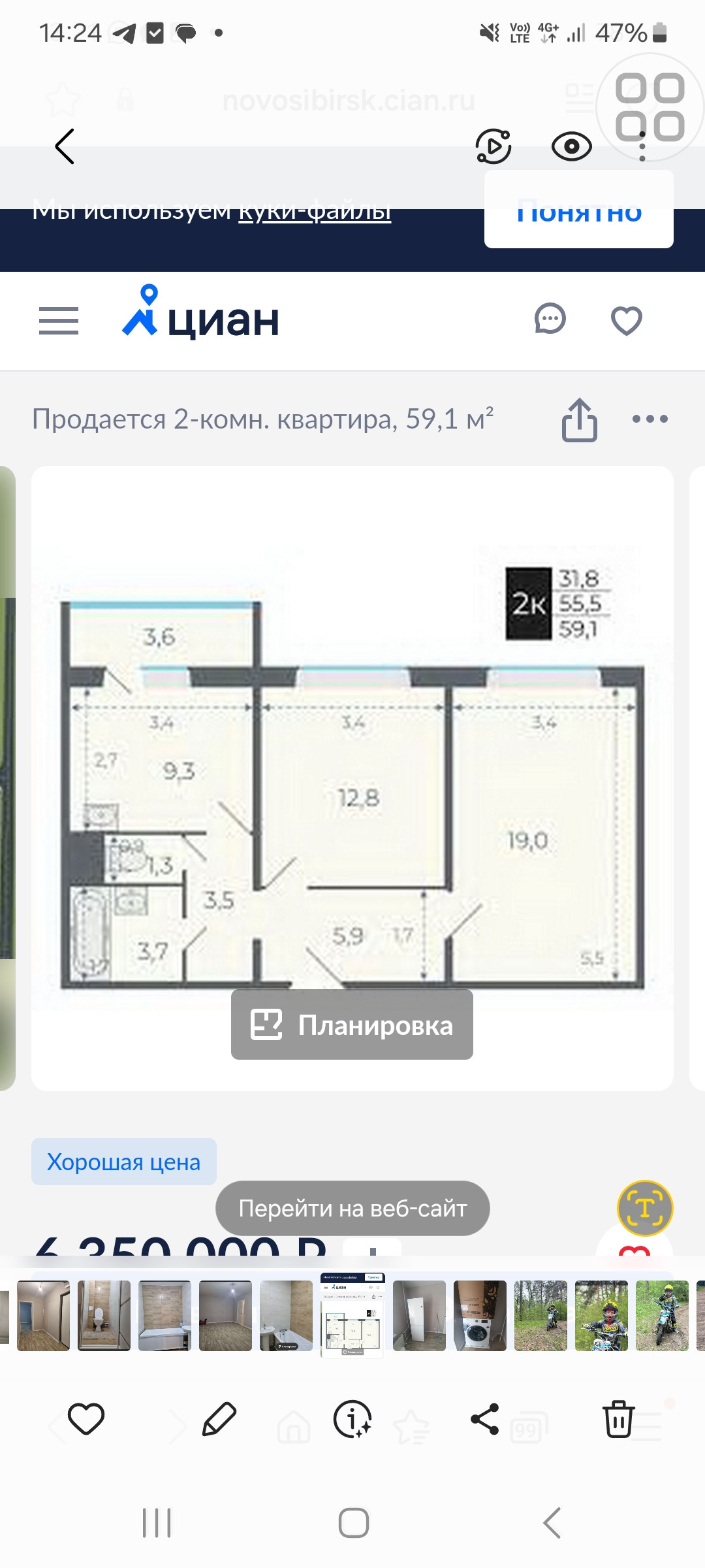 Общая площадь 56 м2