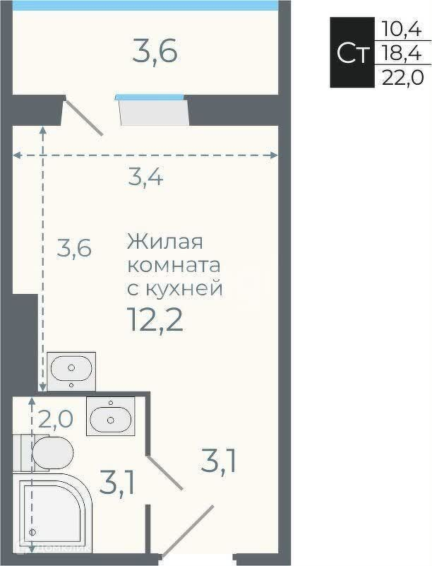 Общая площадь 22 м2