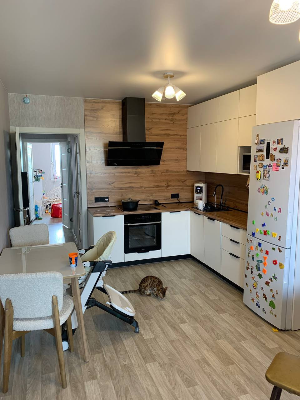 В квартире все необходимое для жизни. Сделан новый ремонт, все делали для себя. Большие шкафы в спальне и прихожей, в детской мебель по запросу можем убрать. Есть водонагреватель на 50л, стиральная машинка, телевизор, посудомойка, вытяжка, микроволновка, духовка, варочная панель.