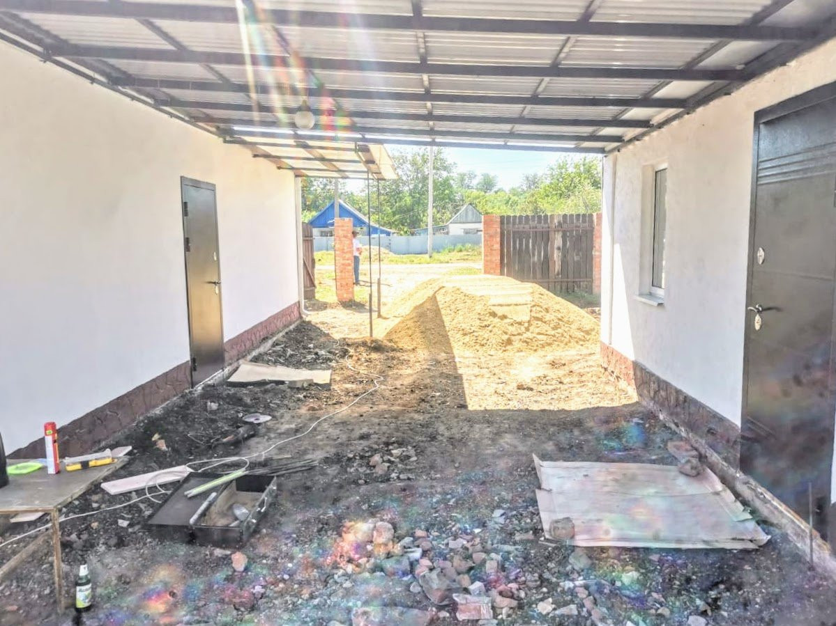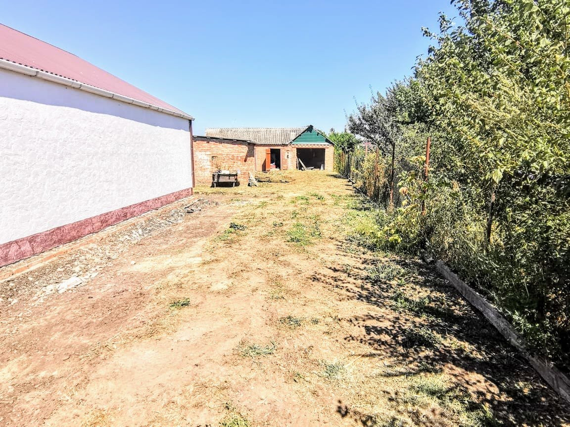 Из хоз.построек: гараж на одну машину, помещения свободного функционала, уличная колонка с артезианской скважиной. Земельный участок 16,64 соток, с фруктовыми деревьями. Территория двора в процессе облагораживания, кладется тротуарная плитка. На данный момент забор деревянный, но будет заменен, ширина фасада 22,76 м.. За двором есть место для стоянки автомобиля. Широкая гравийная улица, застроена и заселена. В школу (№ 18 пос. Парковый), забирает и привозит обратно школьный автобус. Также ходит рейсовый автобус (5 раз в день). Тихое место, где можно отдохнуть от городской суеты и пыли. До города Тихорецка, примерно, 10 км..
