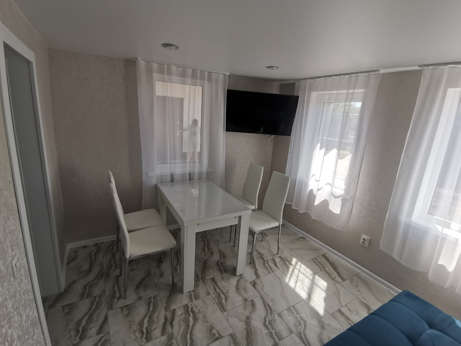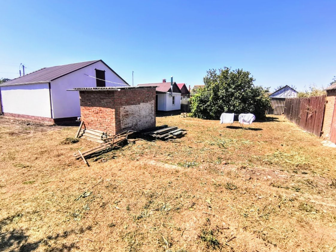 Саманное домовладение, с внешней стороны обложено кирпичом и оштукатурено, кровля - металлопрофиль, о.п. 49,9 кв.м. (фактическая площадь больше), расположенное в пос. Садовый по ул. Азина. Состоит двух жилых комнат смежного расположения, кухни, с/у и коридора. Выполнен свежий косметический ремонт. На стенах обои нейтральных оттенков, с элементами декоративного кирпича, гипсокартонные потолки, полы застелены ламинатом. На кухне стены оклеены обоями, гипсокартонный потолок со встроенным точечным освещением, пол застелен ламинатом. С/у совмещенный, облицован плиткой. Установлены металлопластиковые окна. Счетчики на коммуникации. Сплит-система. Видеонаблюдение. Остается вся мебель. Входная дверь - металлическая. Перед входом в дом построен капитальный навес, который соединяется с кирпичной летней кухней, о.п. 18,4 кв.м.. С внешней стороны она облицована фактурной штукатуркой, кровля - металлопрофиль. Состоит из гостинной и кухни. Везде стены оклеены обоями, натяжные потолки со встроенным точечным освещением, полы облицованы плиткой, есть функция “теплый пол”. Установлены металлопластиковые окна. Счетчики на коммуникации. Сплит-система. Отопление - навесной двухконтурный газовый котел, с функцией дистанционного управления. Остается вся мебель и бытовая техника. Входная дверь - металлическая.