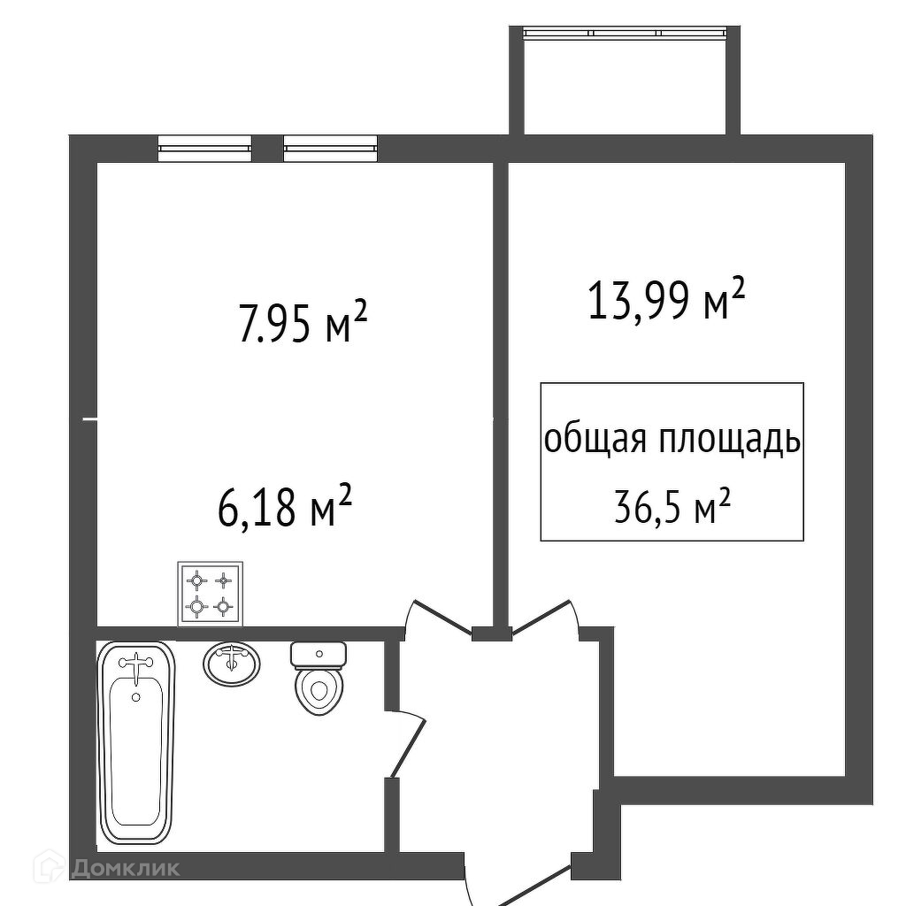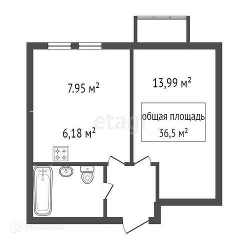 Общая площадь 36.5 м2