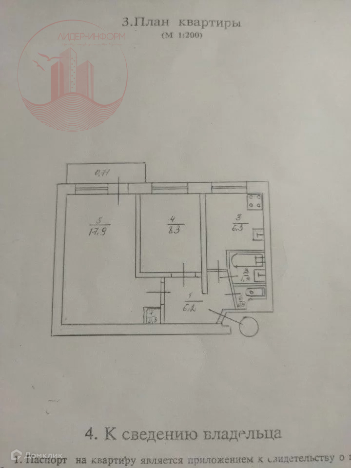 Жилая площадь 26.2 м2