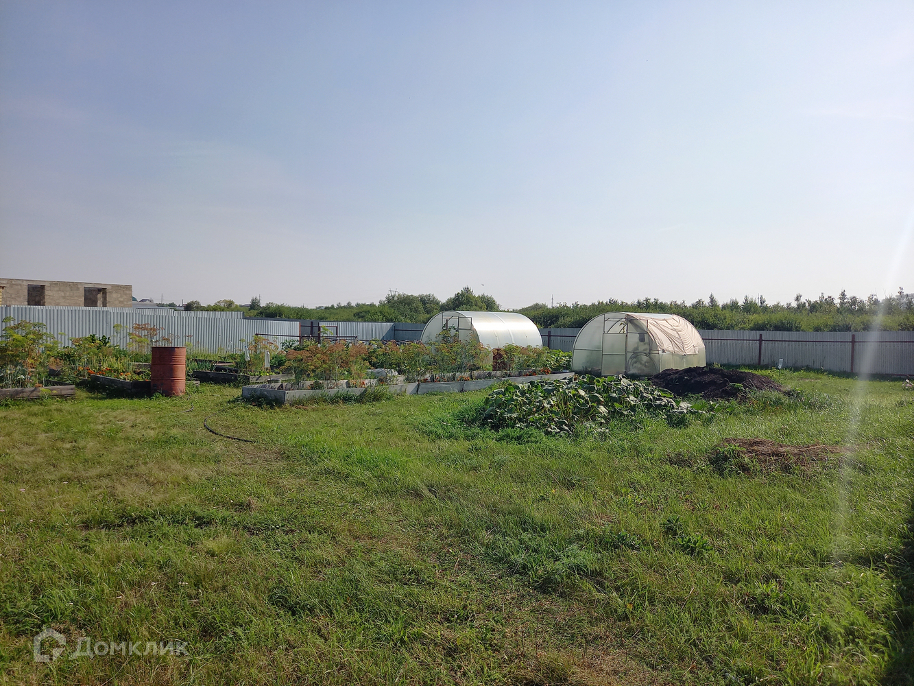 Участок 15 соток, огорожен забором из профлиста.