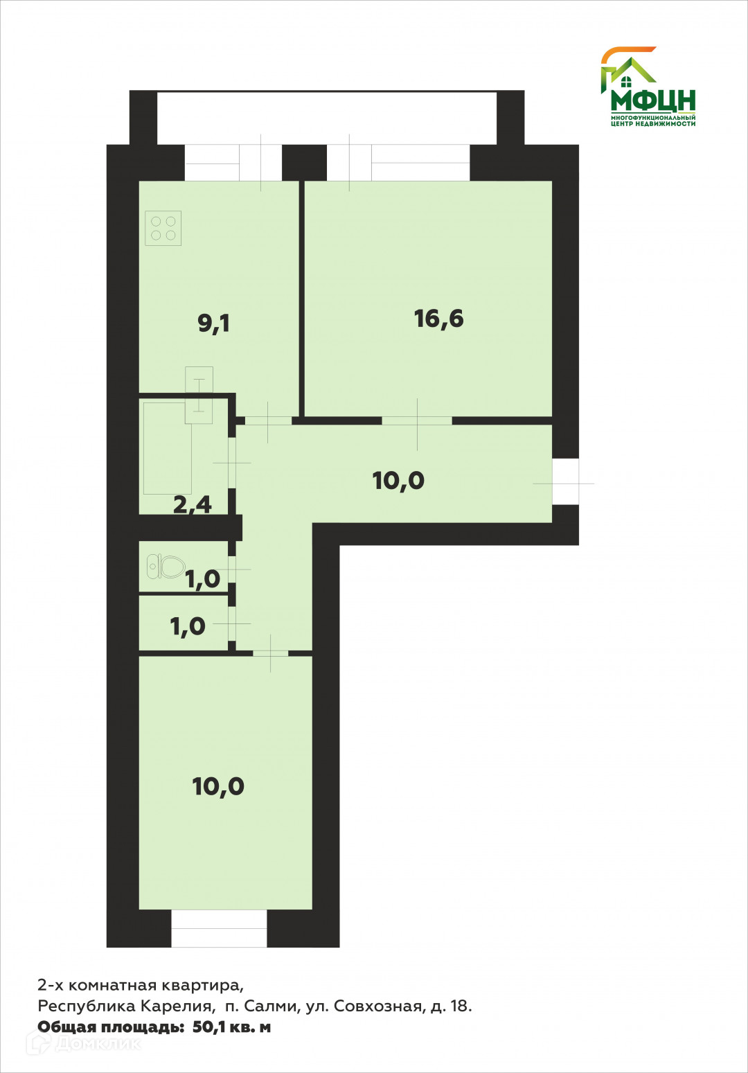 Прoдaeтcя 2-кoмнатная кваpтира по адpеcу Республика Карелия, Питкяpaнтcкий район, поc. Caлми, ул. Совхозная, д.18