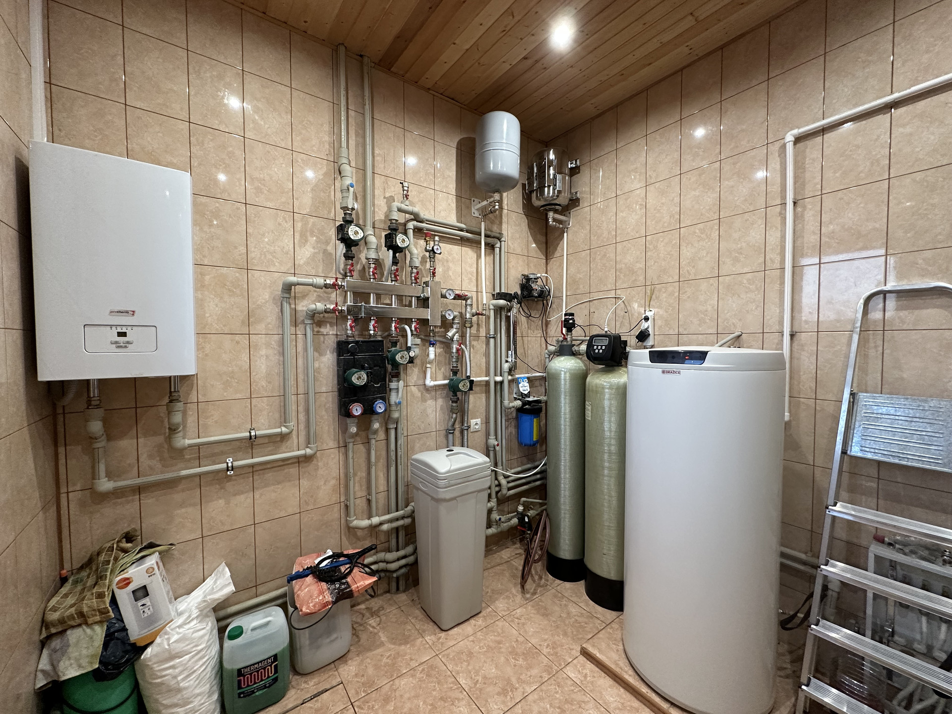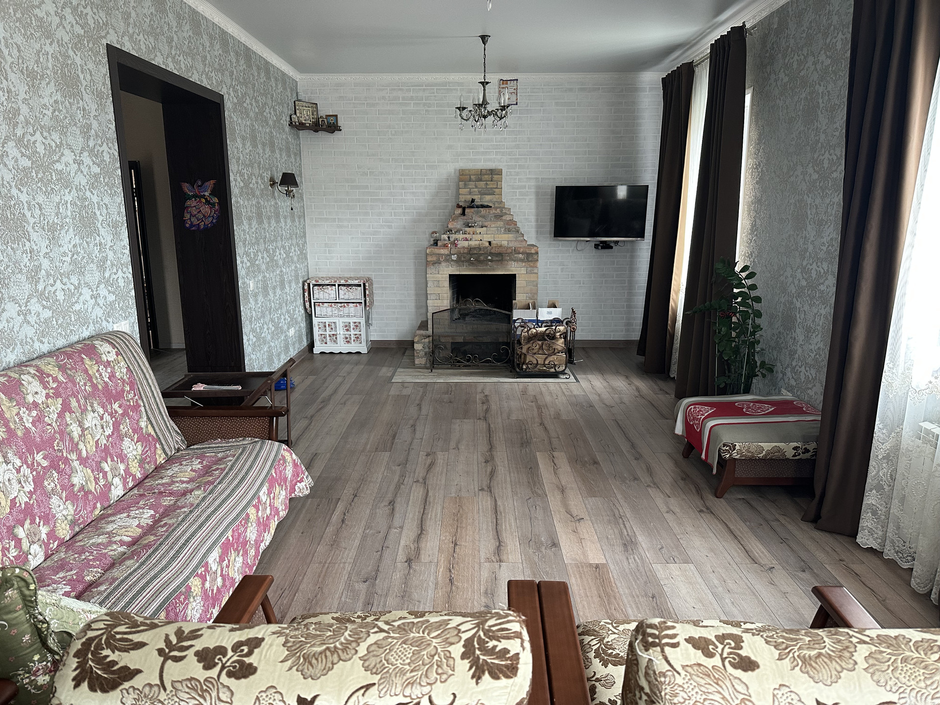 Газ, свет, вода (своя скважина) - все коммуникации подключены, своя система водоочистки, выгребная яма. Камин функционирует.