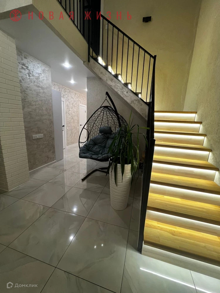 - лестница на 2 этаж с подсветкой ступеней