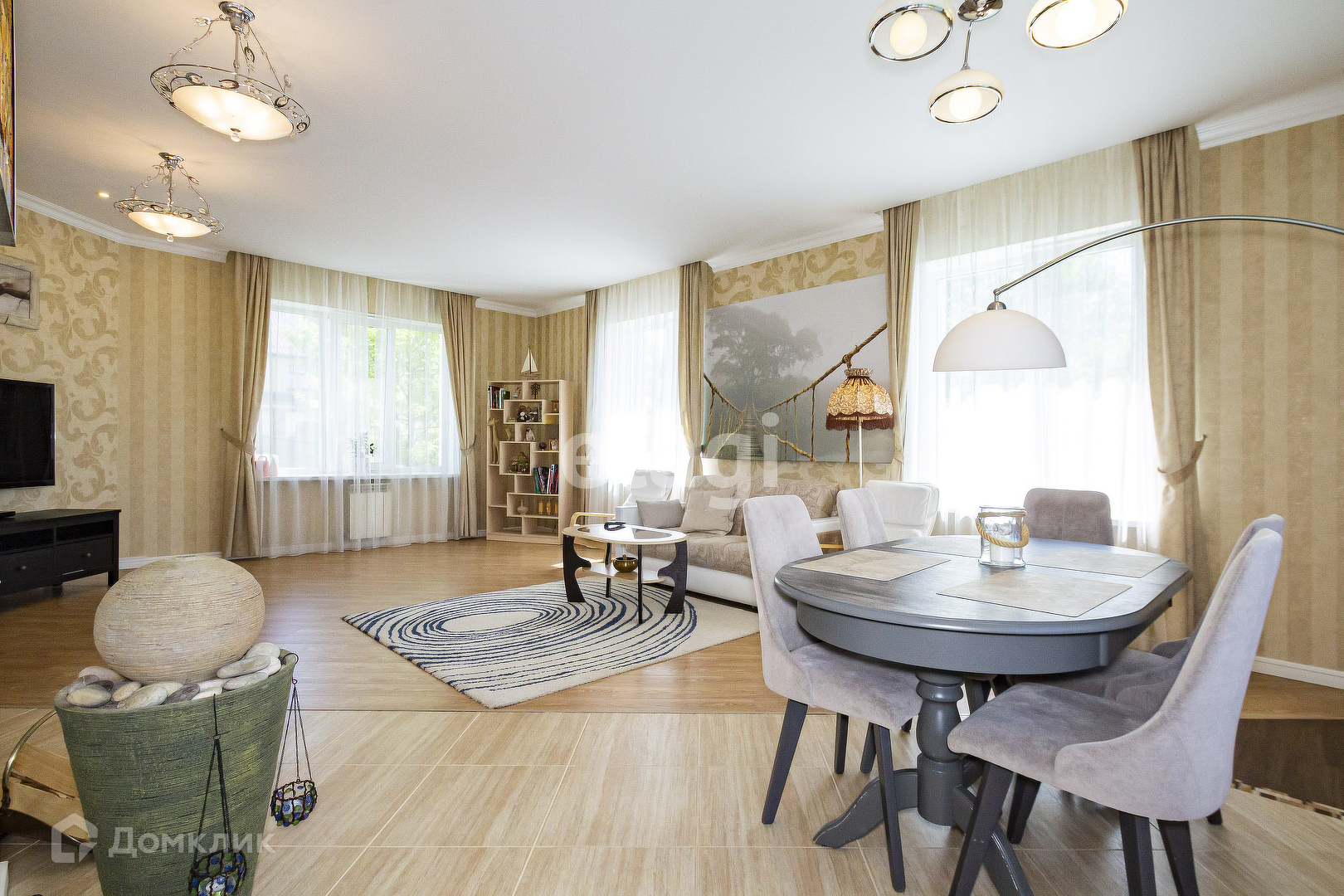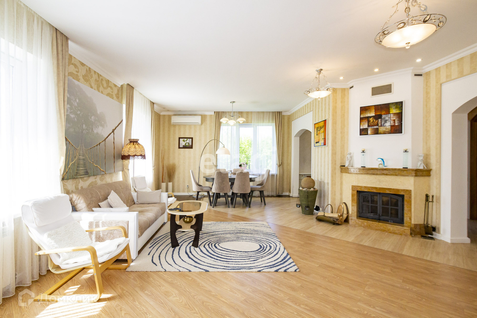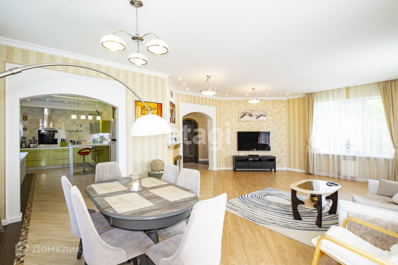 - Большая кухня-столовая мягко переходит в гостиную, что располагает к теплым встречам