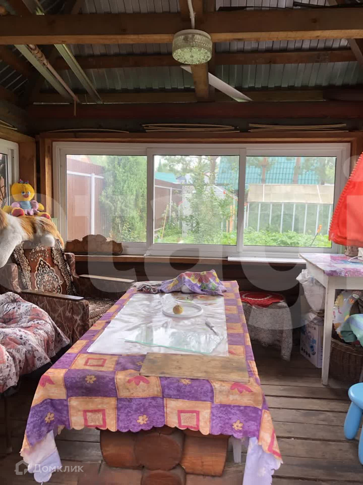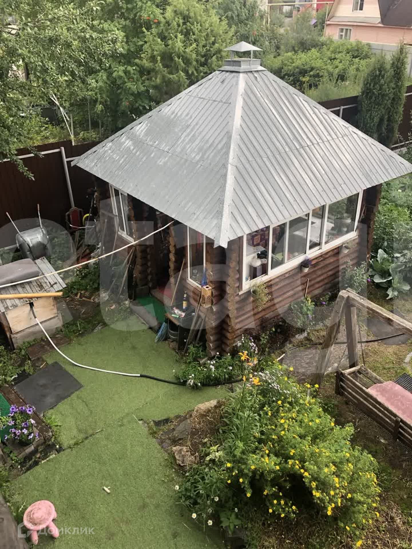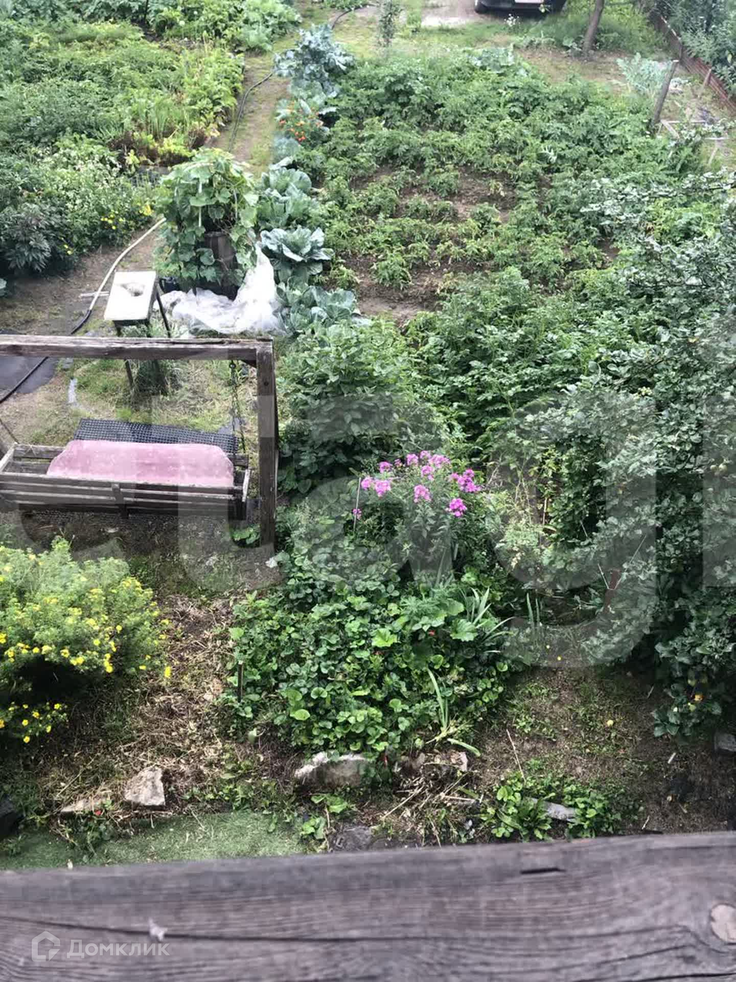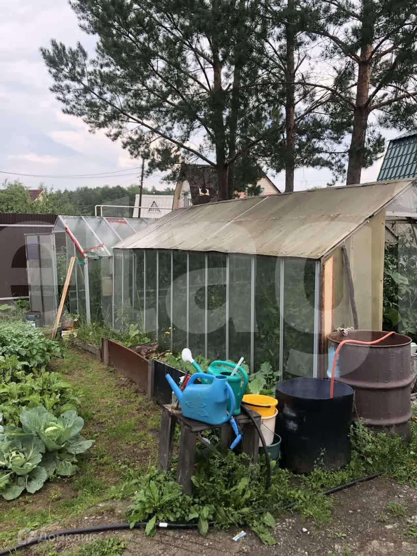 Садовые насаждения: 2 туи, 3 яблони, крыжовник, маленькая слива, жимолость, малина, клубника.