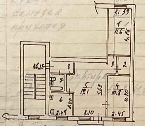 Одна комната проходная, 19,1 кв.м. Две комнаты изолированные (10.8 и 11.6 кв.м.) В большой комнате выход на застекленный балкон. Остекление деревянное. Окна в квартире двойные, деревянные. Кухня - 6 кв.м. Есть помещение для организации гардеробной комнаты. Санузел совмещенный. Ванная чугунная. Во всей квартире уложен линолеум. Межкомнатные двери деревянные. Центральное отопление, оплата сезонная. Произведена частичная замена электропроводки. Дом газифицирован. ГВС - электронагреватель. Установлены счетчики на электроэнергию и ХВС.