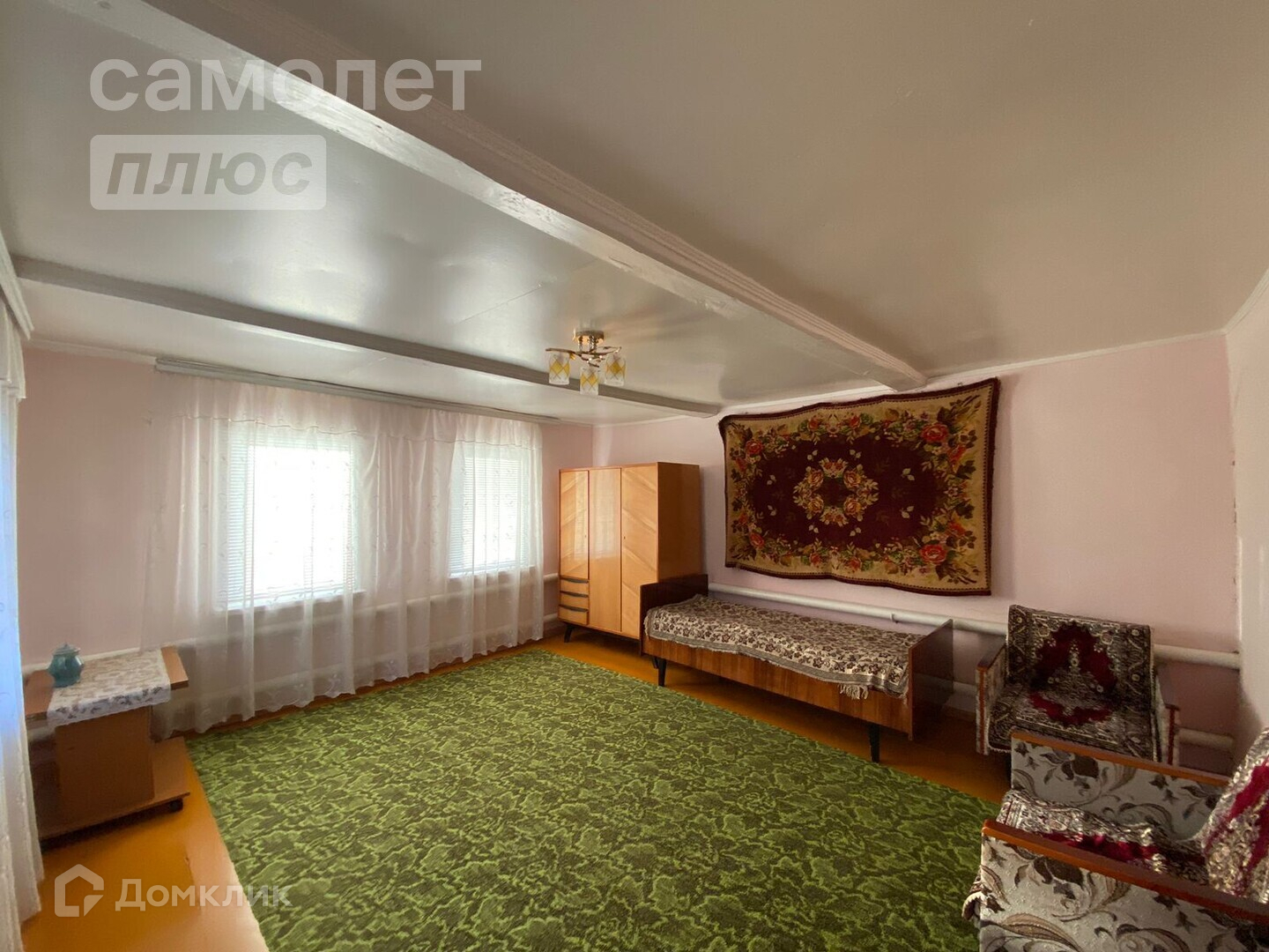 Расположен по адресу: п. Саракташ, ул. Фрунзе. Общая площадь 91,4 кв.м. Земля в собственности, площадь участка 8,5 соток. Стены дома из бруса. На участке имеется свой гараж. Коммуникации: газ, электричество, выгребная яма, вода.