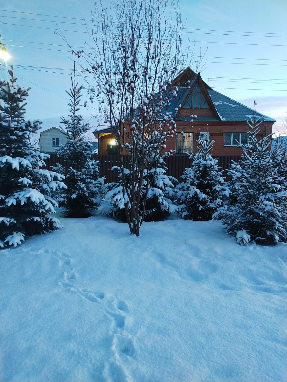 Во дворе произрастают плодоносящие яблоня, вишня, черная смородина, красная смородина, жимолость. Дорожки забетонированы.