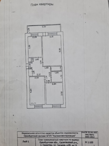 3-комнатная квартира, 62 м2, в аренду на длительный срок в посёлке Саракташ, улица Чапаева, 89