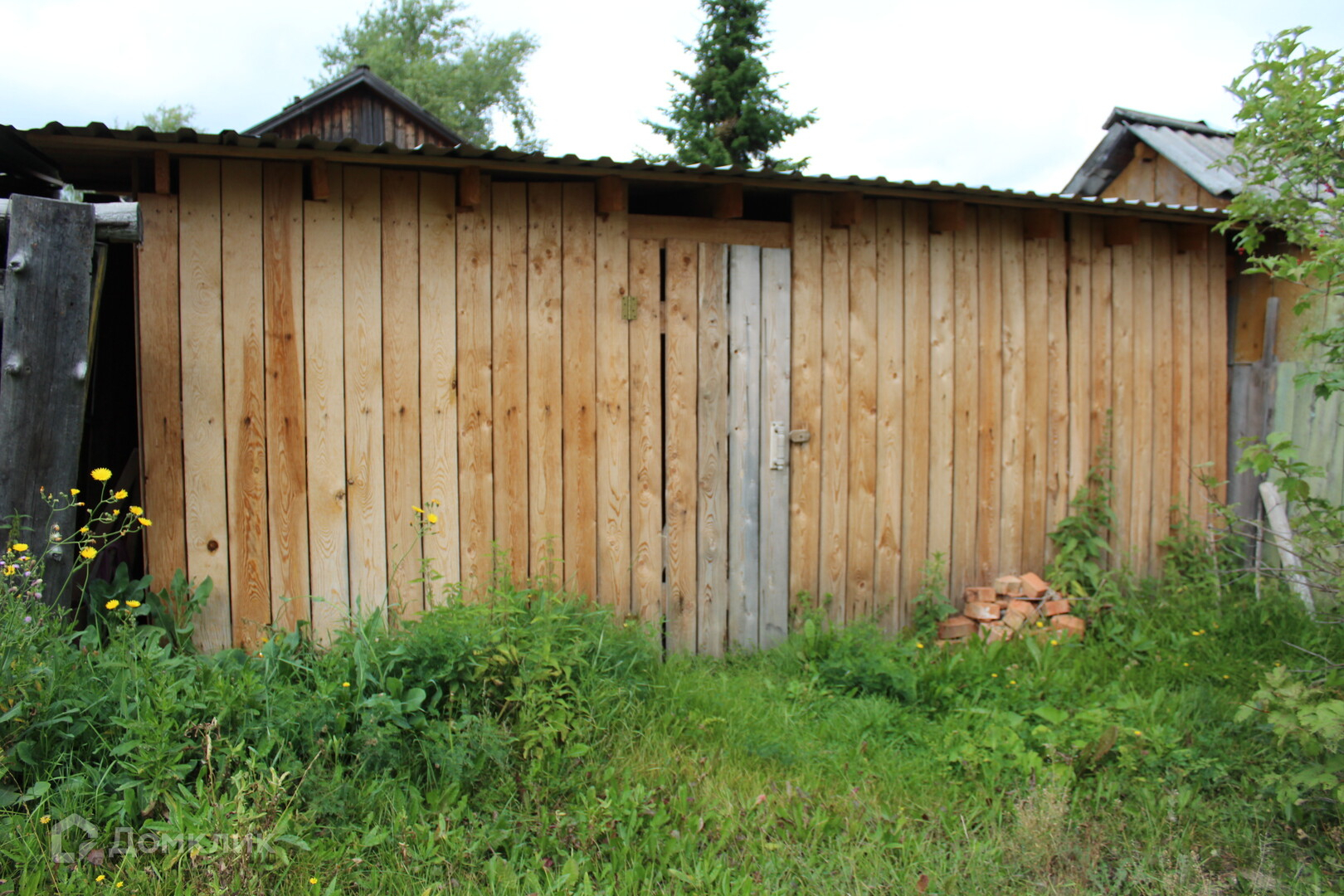 Имеется: веранда, участок, баня и хоз. постройки;