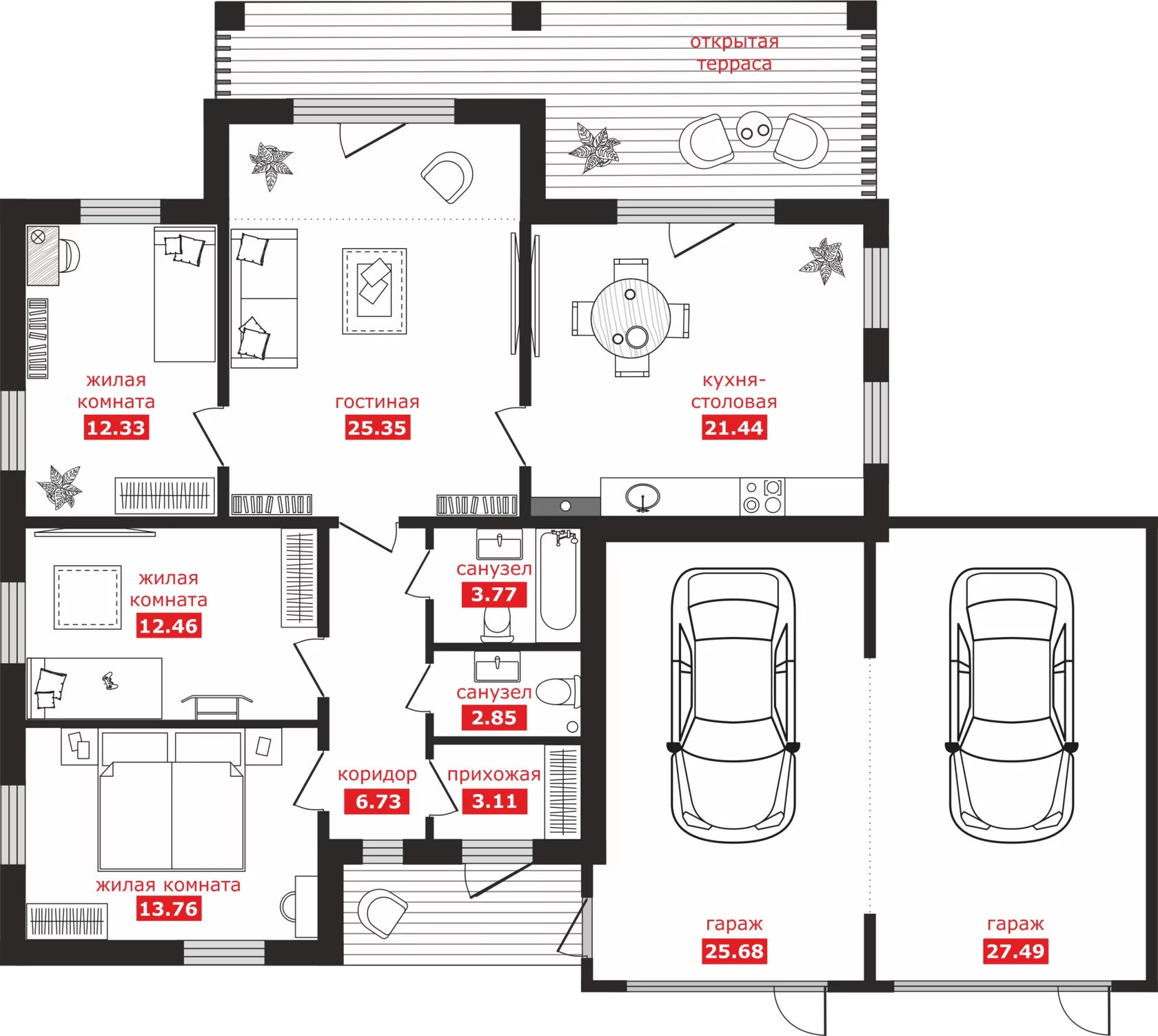 Гибкое планировочное решение: можно менять основной вход, назначение помещений