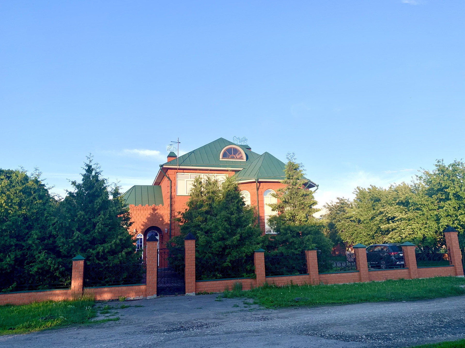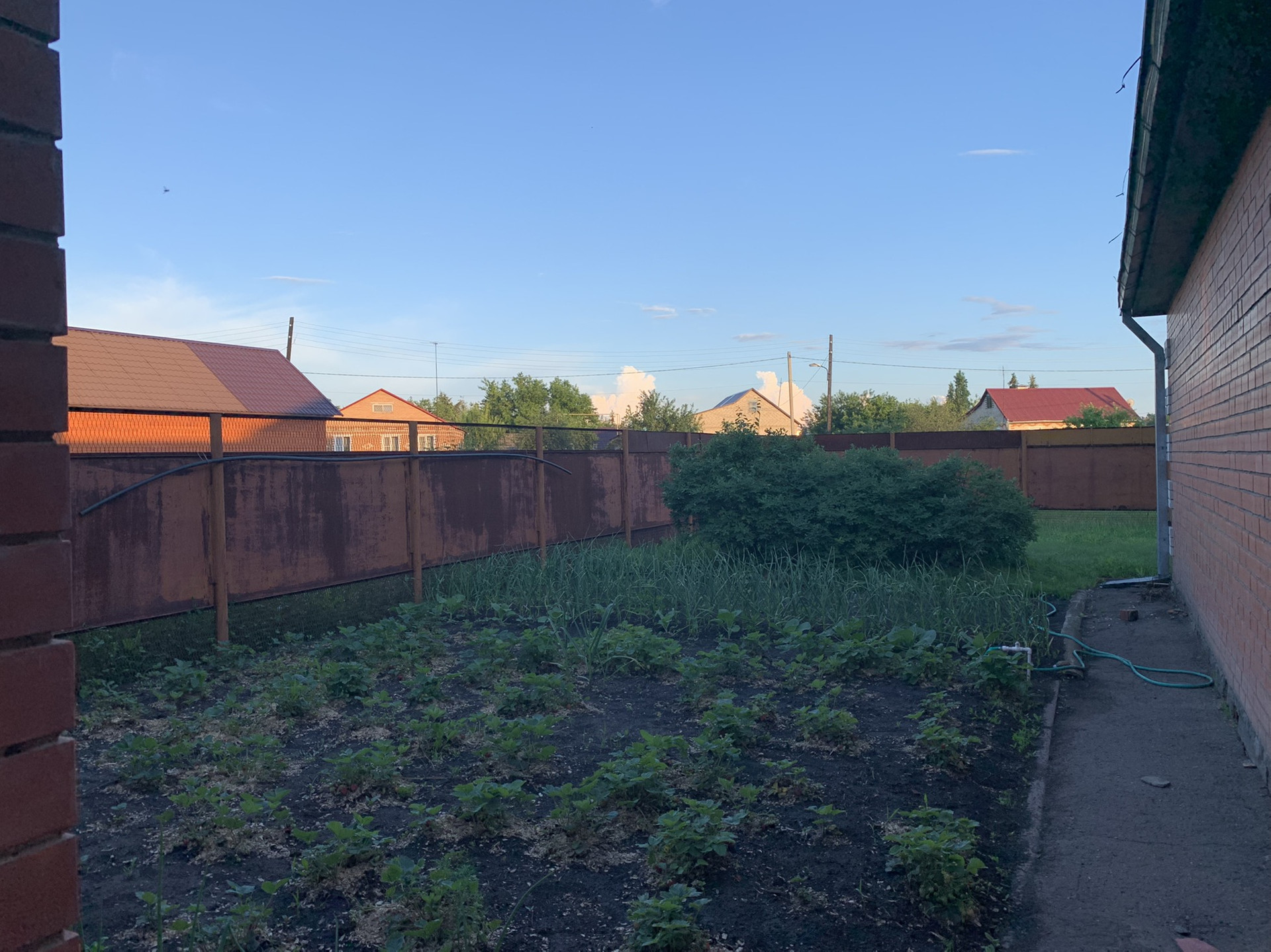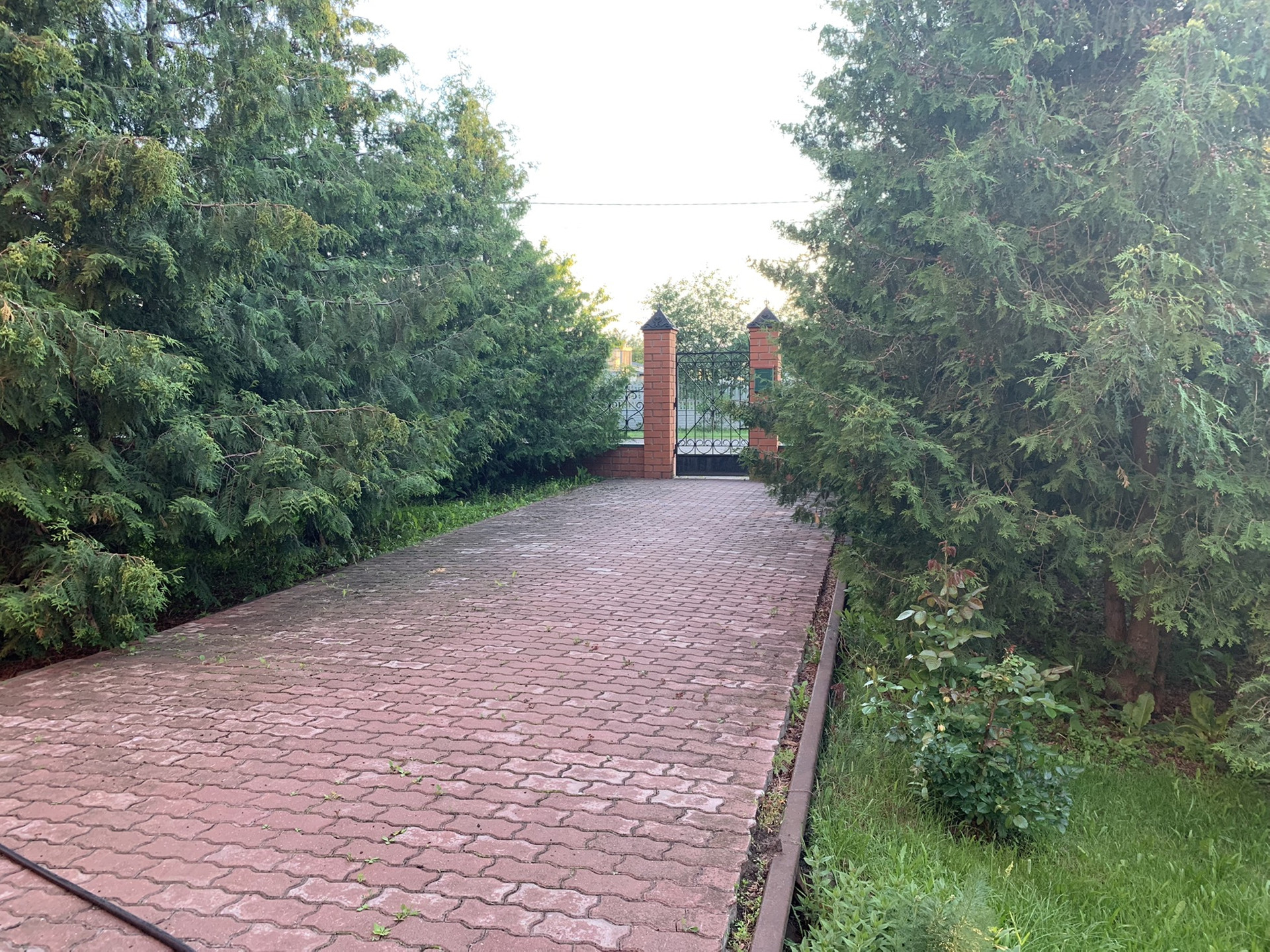 - сад (плодовые деревья, туи), газон;