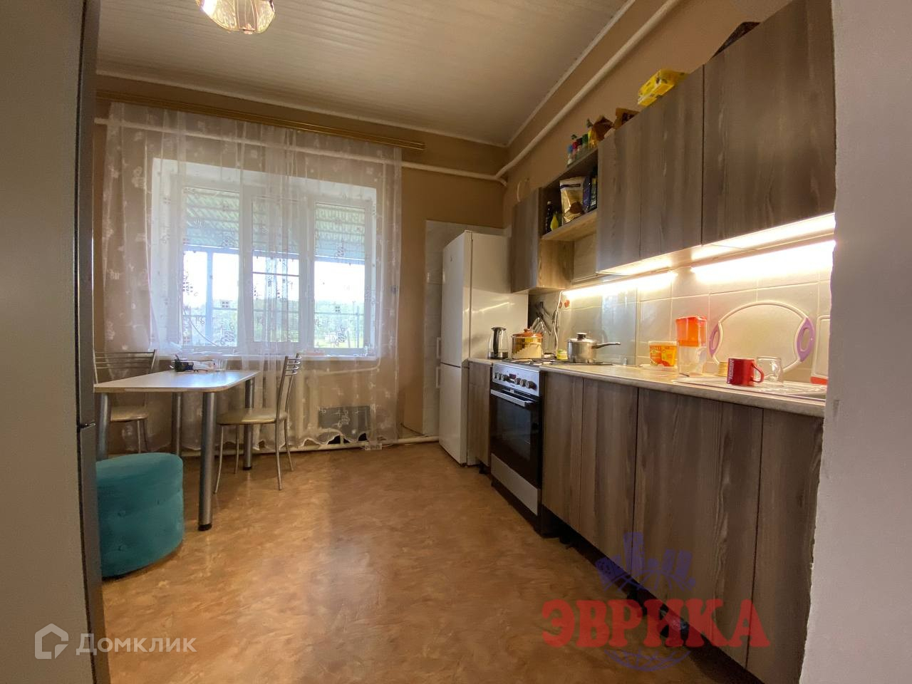 Площадь дома - 112,5 кв. м., в доме -2 изолированные жилые комнаты, одна комната-проходная ,кухня 14,5 кв. м. Сан. узел совмещенный. На полах-линолеум, на стенах-обои, окна-МПО. Коммуникации :электричество ,вода центральная , канализация-септик ,отопление газовое.
