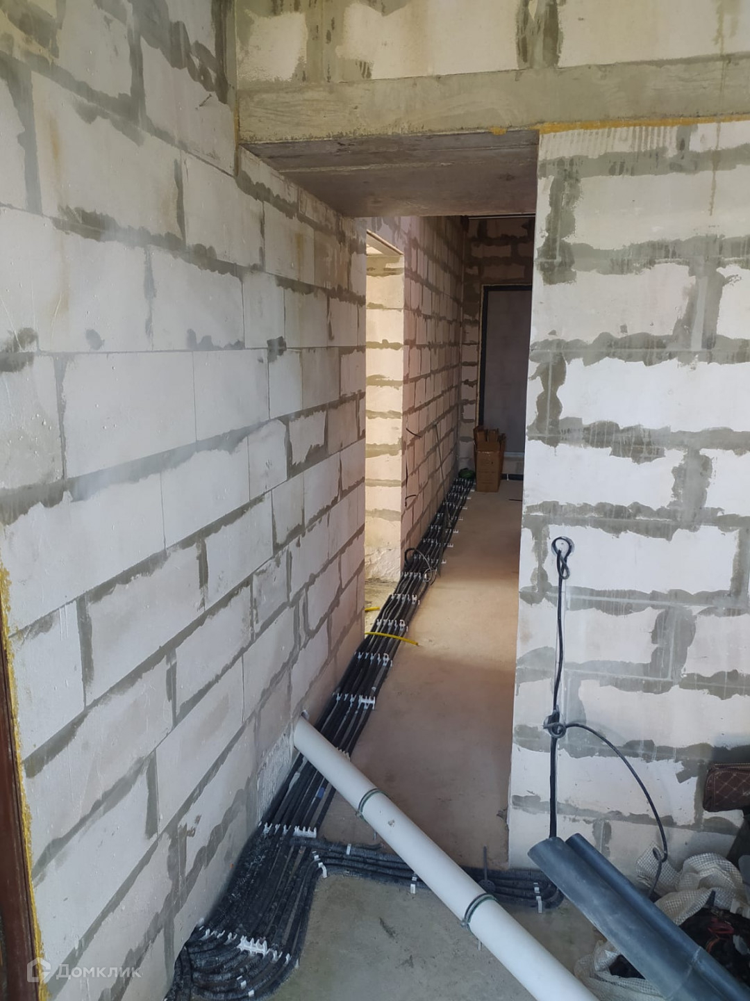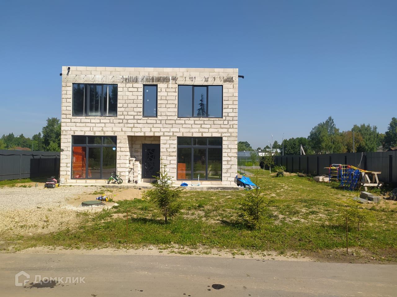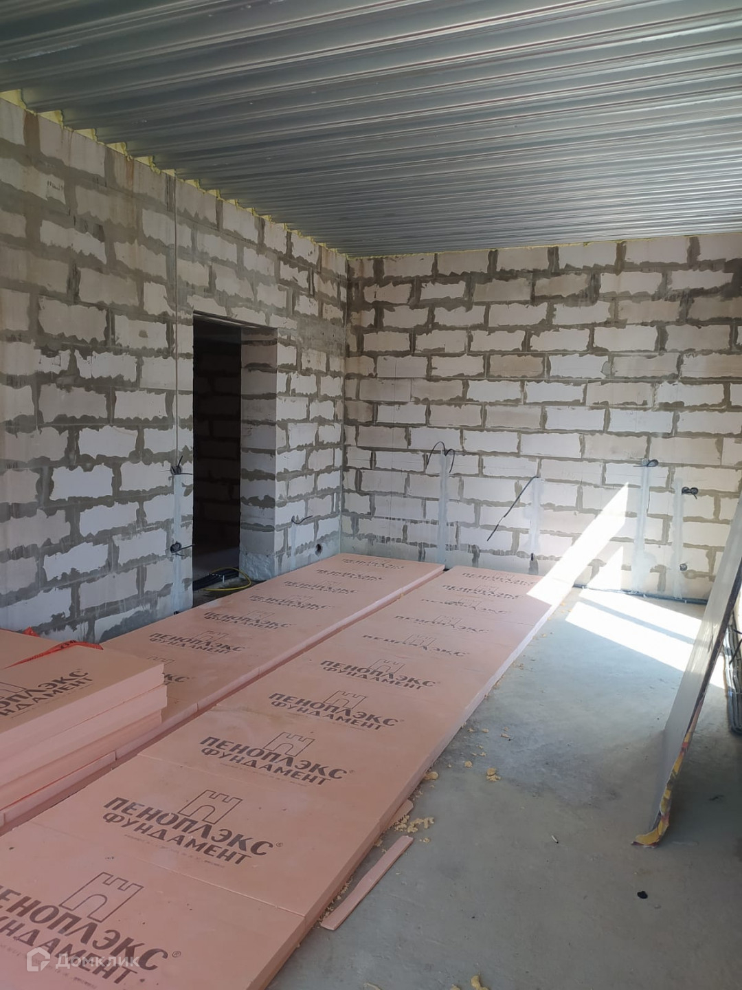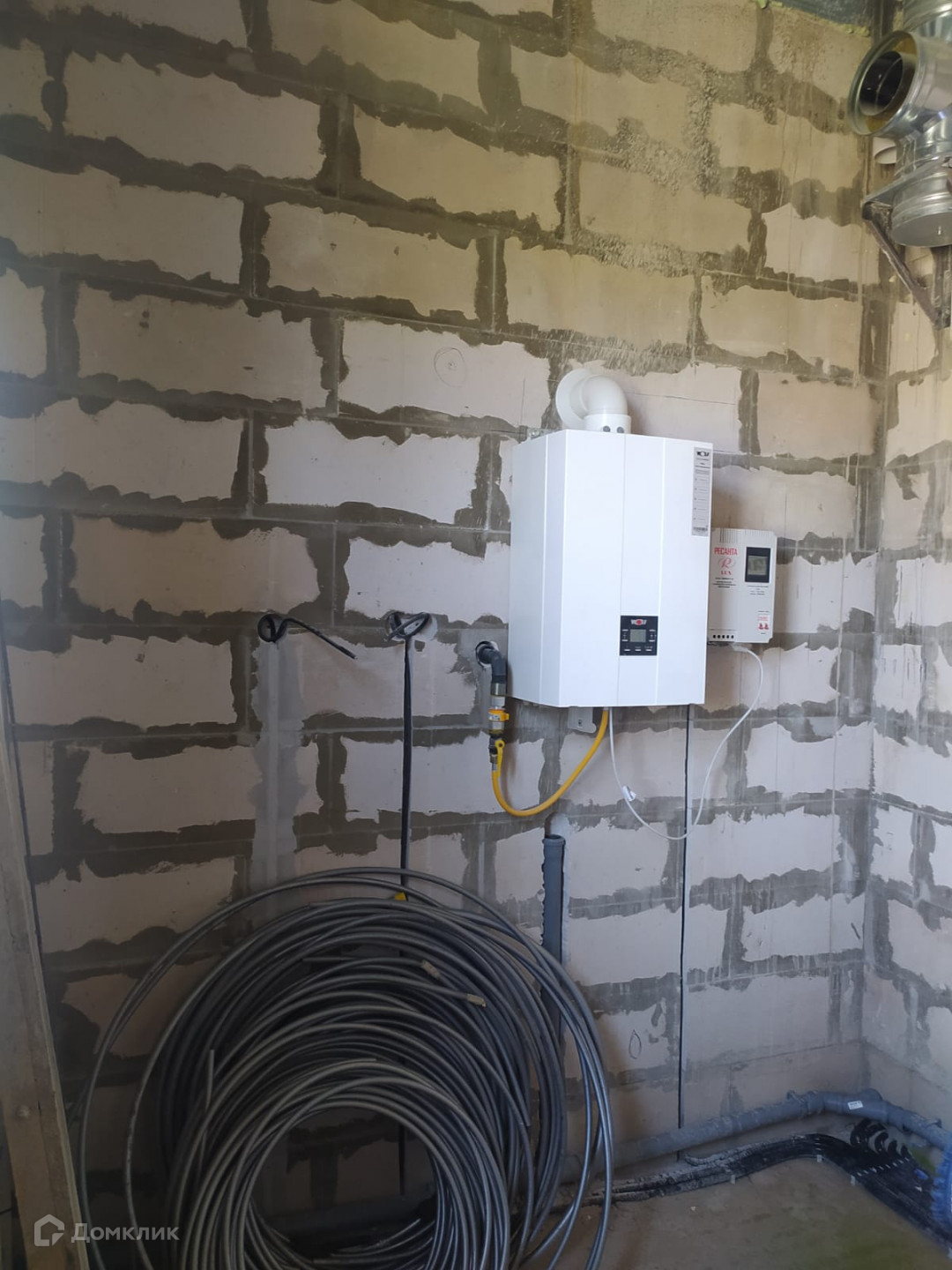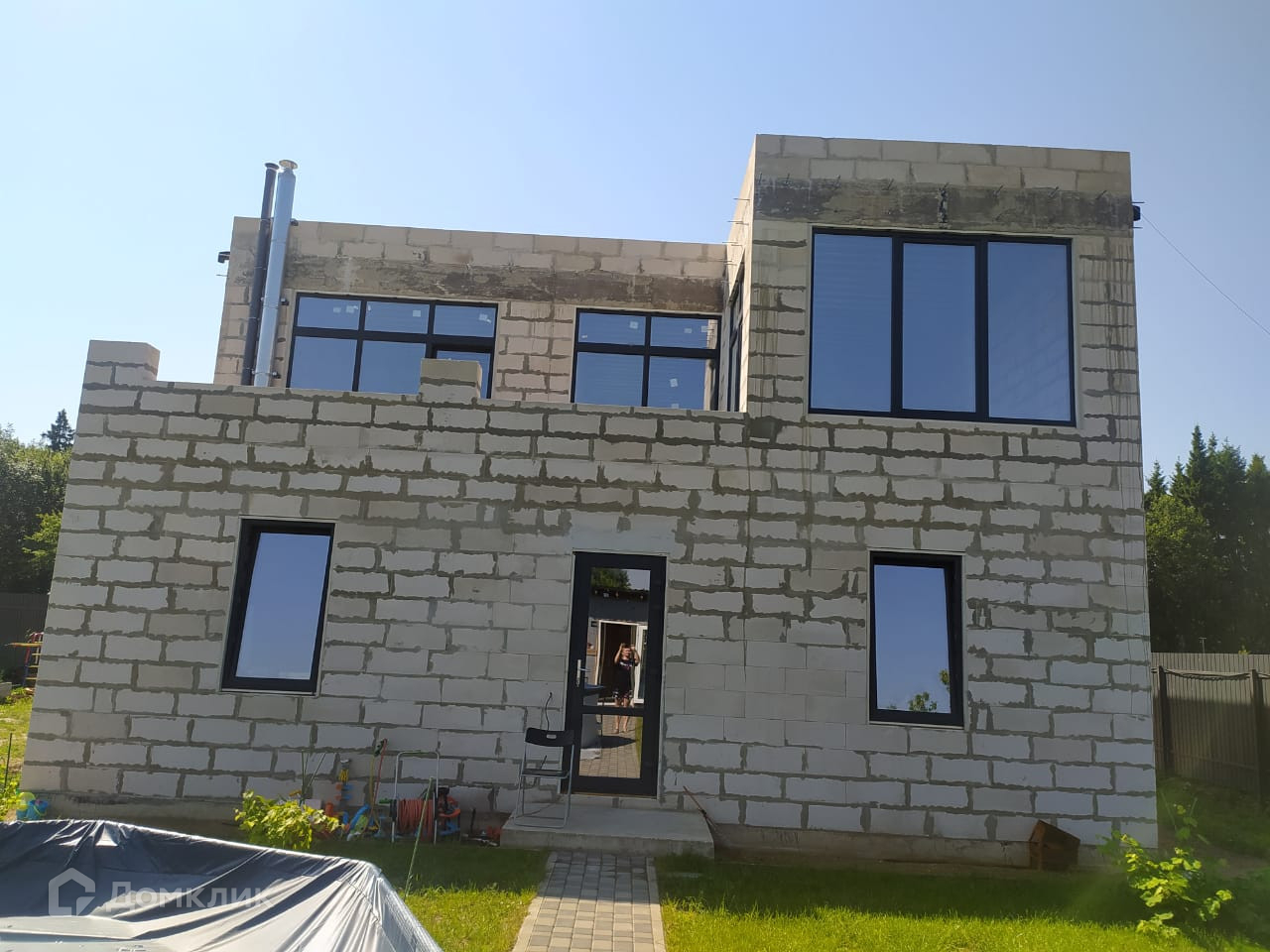 Дом с плоской крышей, фундамент - монолитная плита, стены - пеноблоки d 500 (1-й этаж) и d 400 (2-й этаж) связка стен каждые 2 ряда. Окна Rehau 3 окна с портальным открыванием. Перекрытие потолка монолитная  плита. Газ заведён в дом установлен газовый котёл - wolf f 35. Электрика разведена по первому этажу.