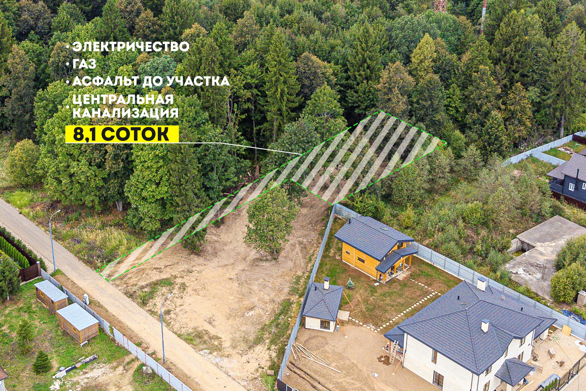 - подъезд по асфальту до самого участка;