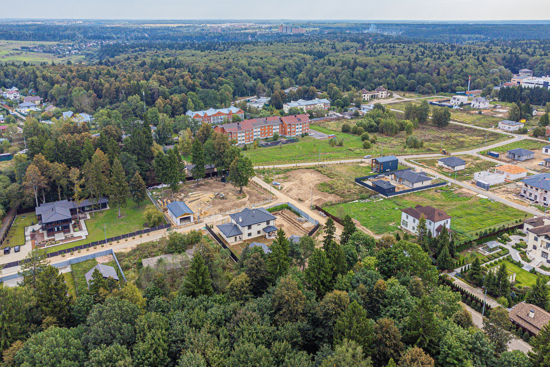 - Шишкин Лес в 5 минутах, там вся инфраструктура (детский сад, школа, поликлиника, магазины и пр.), от поселка ходит автобус;