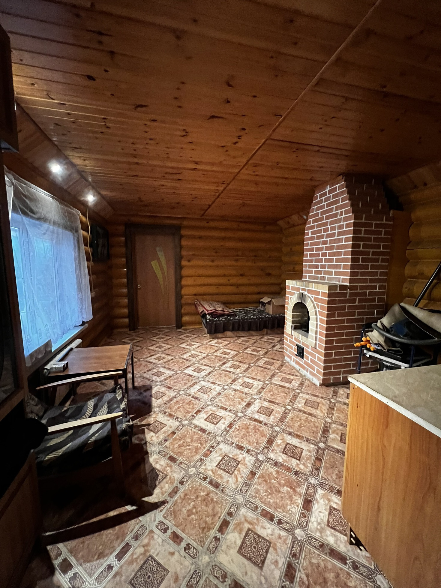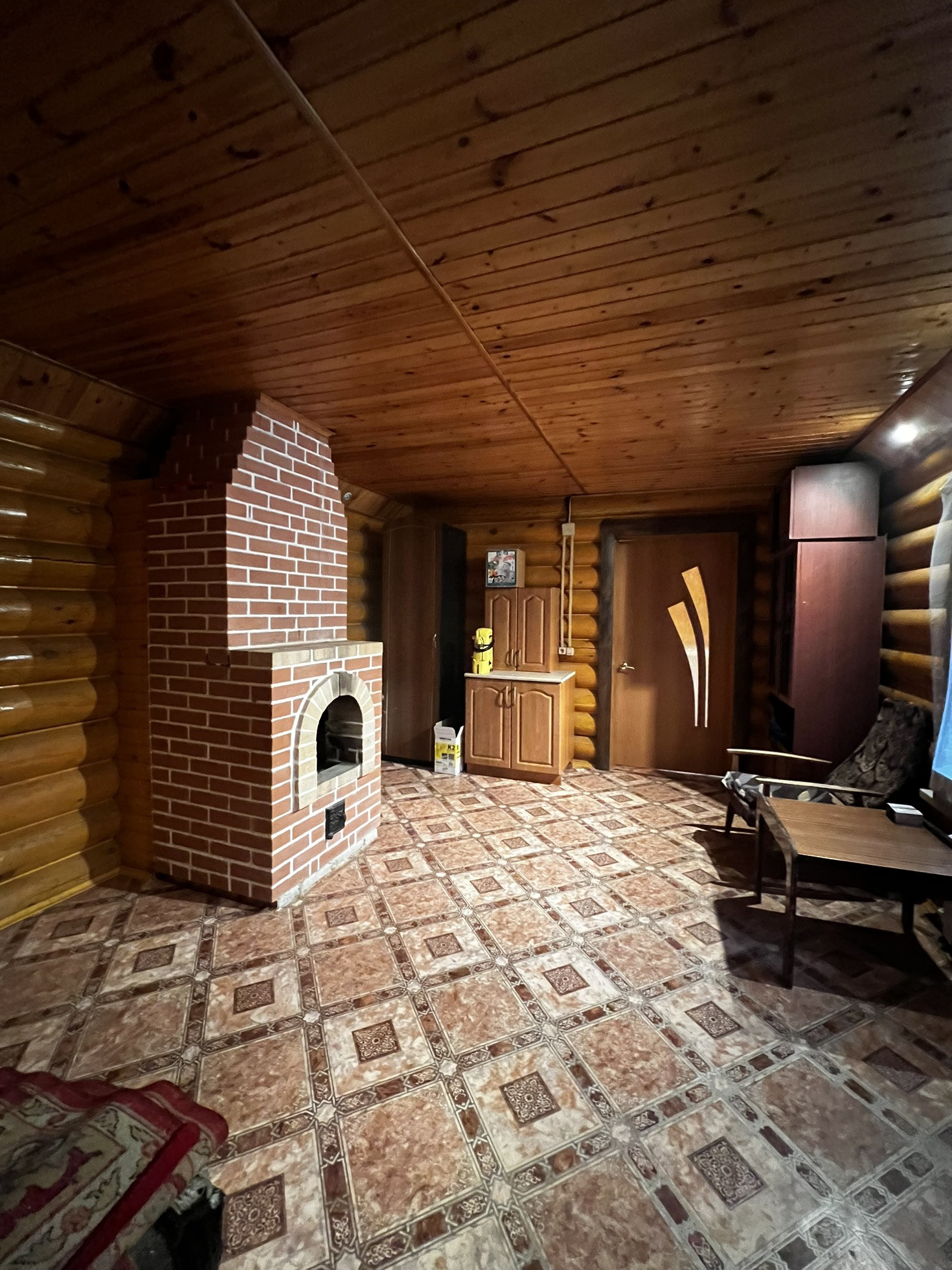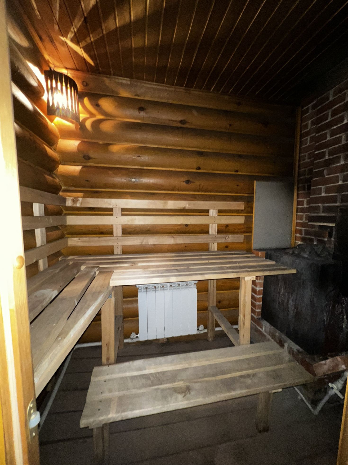 Есть баня с комнатой отдыха и камином. Предусмотрен вход из дома и с улицы.
