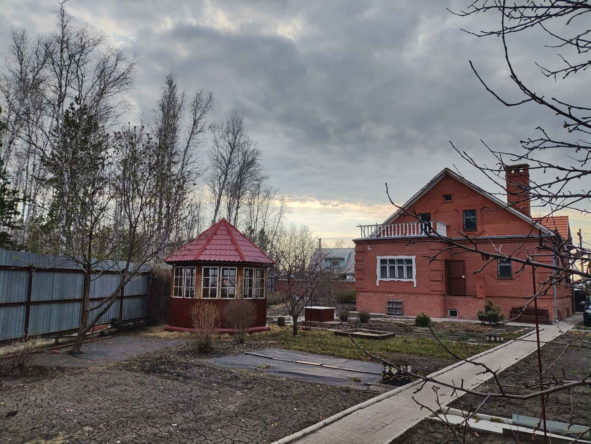 Капитальный кирпичный гараж, баня, беседка и туалет.