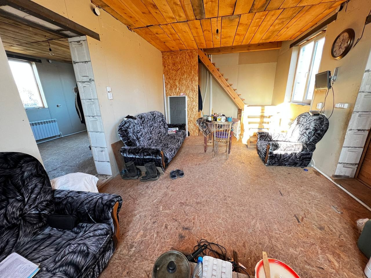В доме требуется только чистовая отделка- поклейка обоев, потолок оббит деревом. Везде окна ПВХ. Газовое отопление. Холодная и горячая вода. Септик 6 кубов. Колодец с питьевой водой.