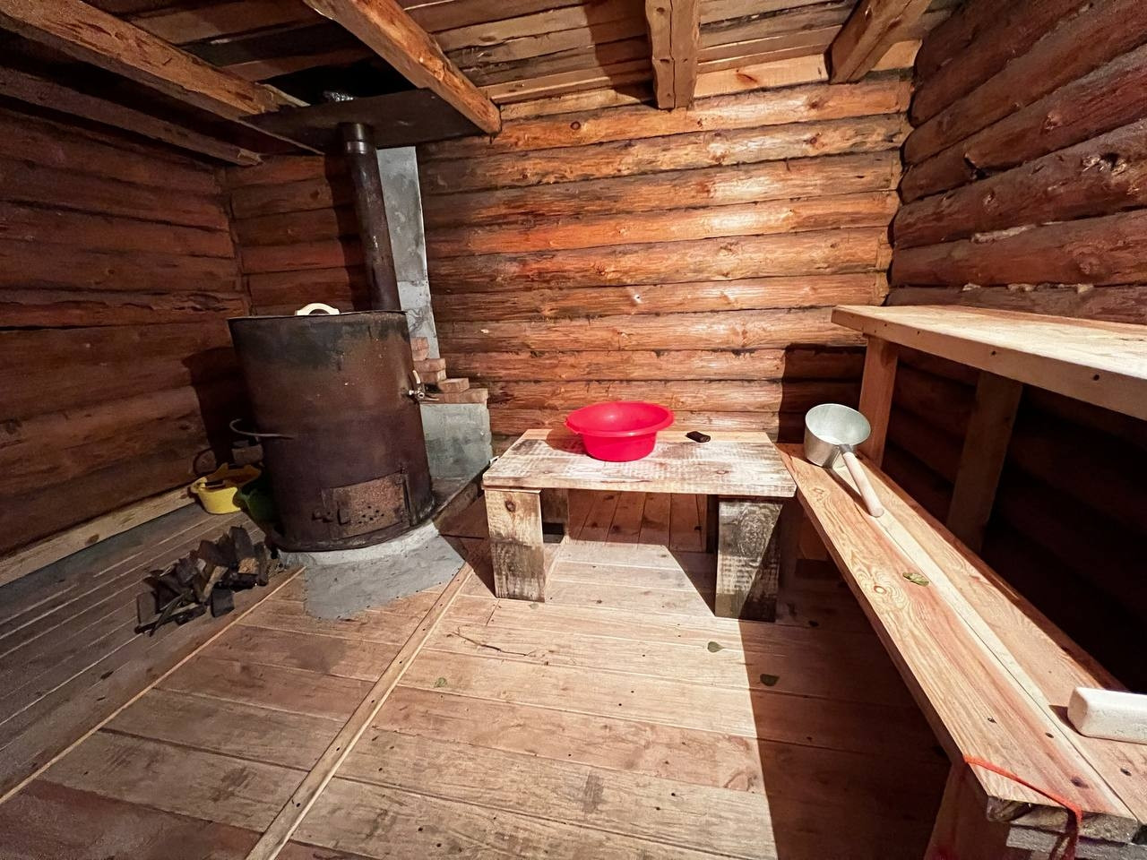 Вход в баню примыкает через предбанник.