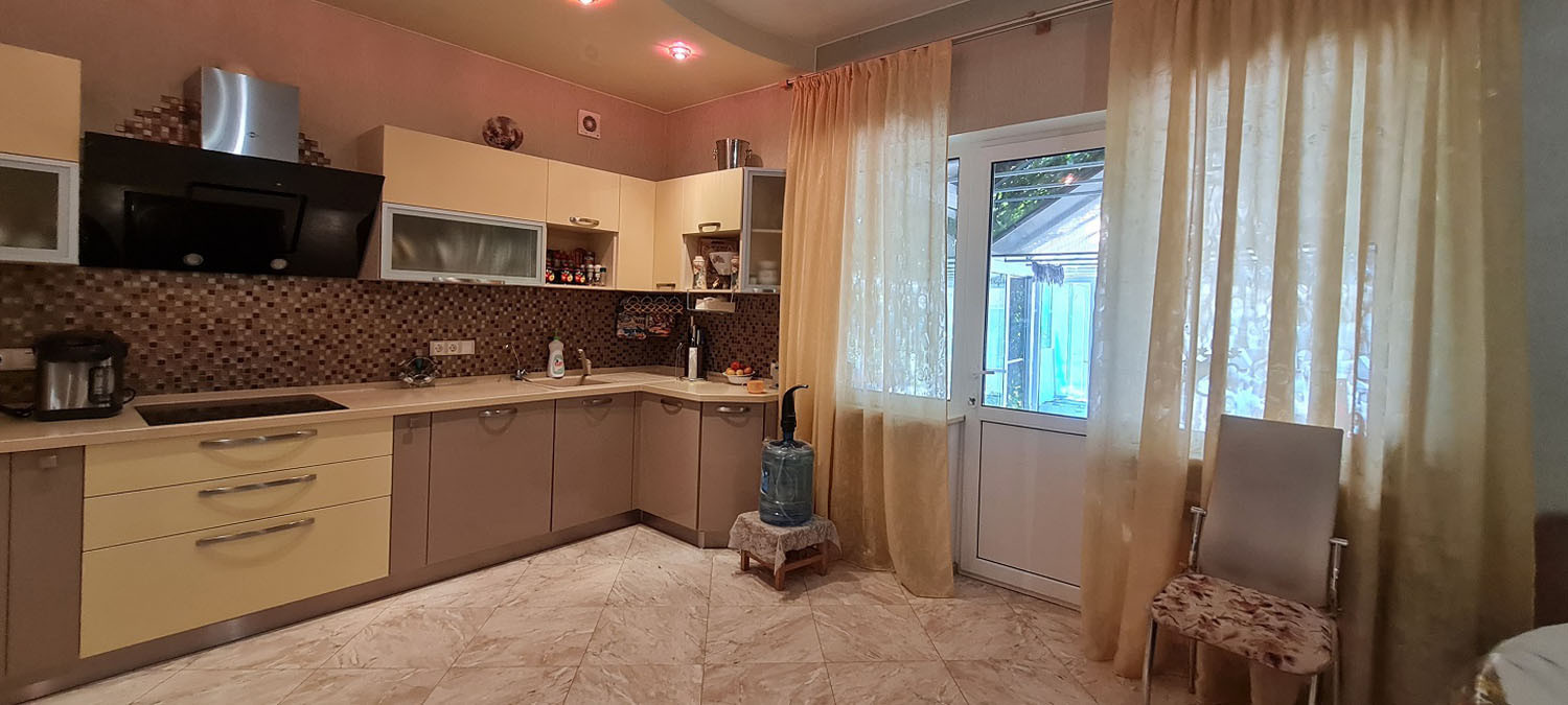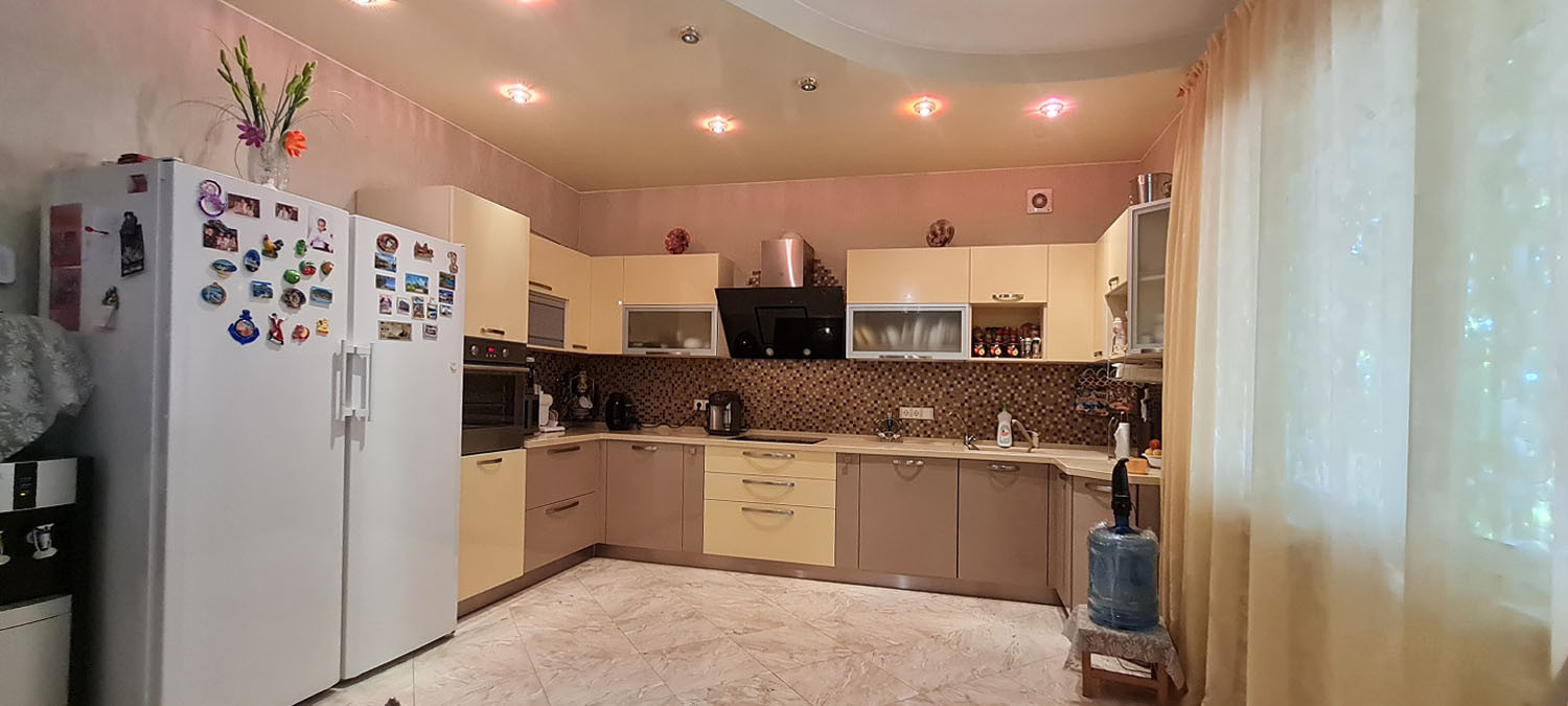 кухня  20 кв.м с крытым переходом в банный комплекс с русской парной и бассейном;