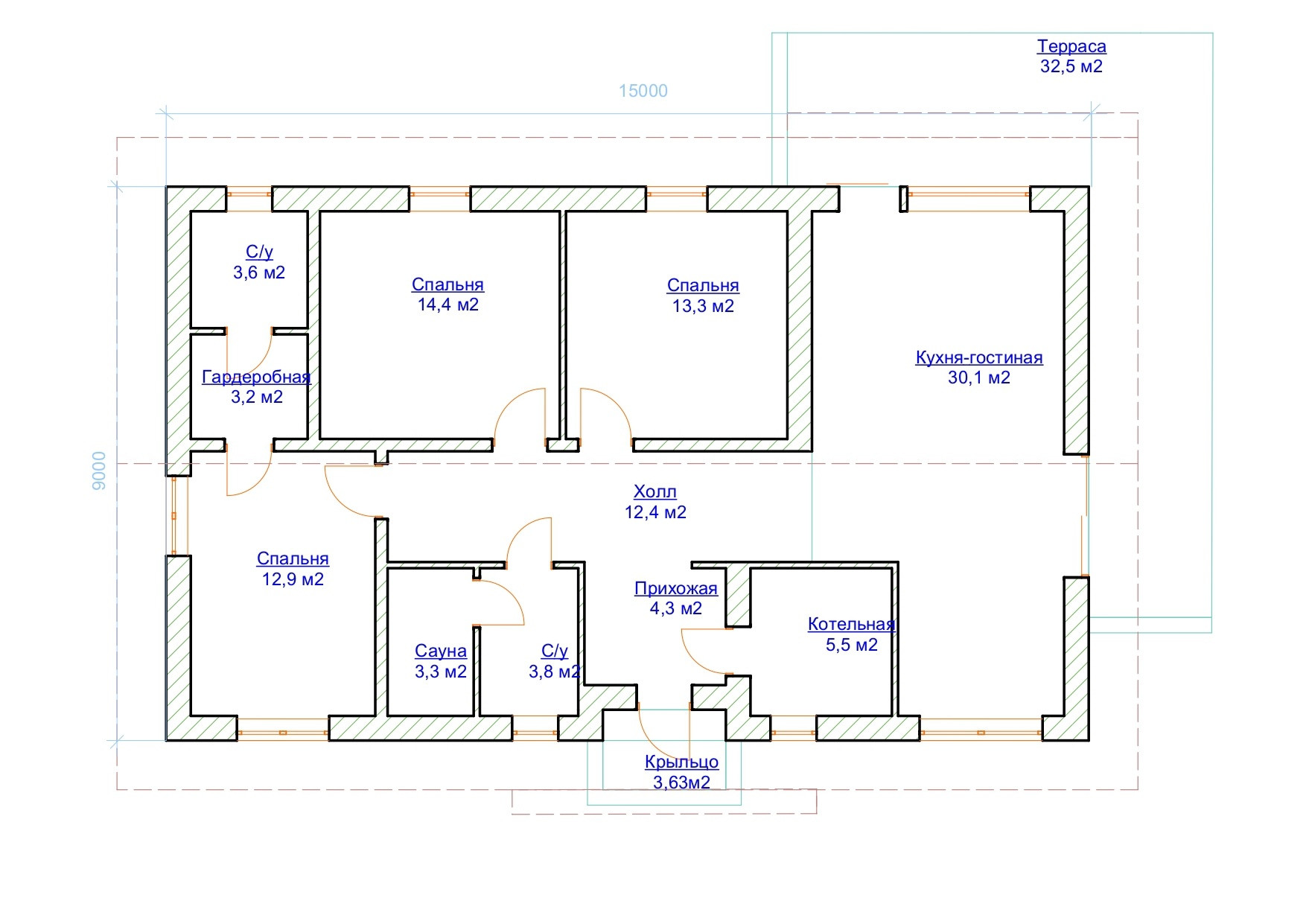 • Просторная терраса 32,5 м²