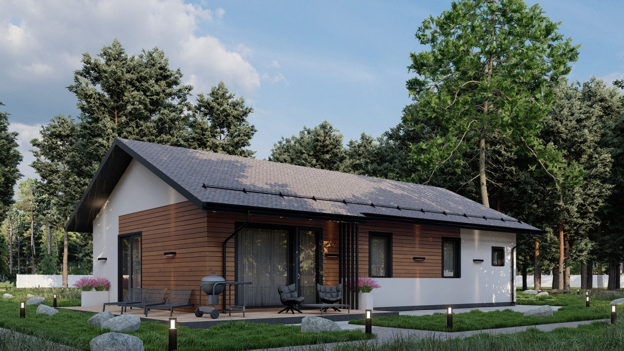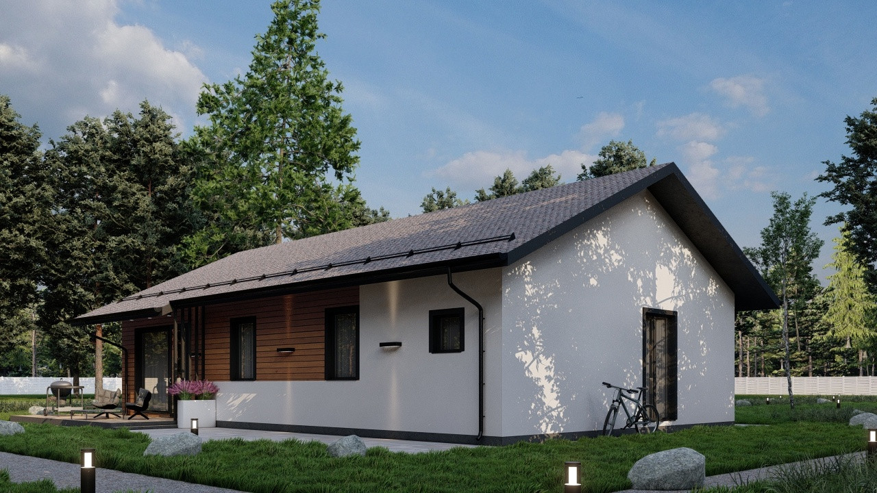Одноэтажный дом с террасой, идеально подходящий для семейной пары или семьи с 1-3 детьми. Возможно в ипотеку, в том числе по льготной ставке 6 %. Покупка участка также возможна в ипотеку!