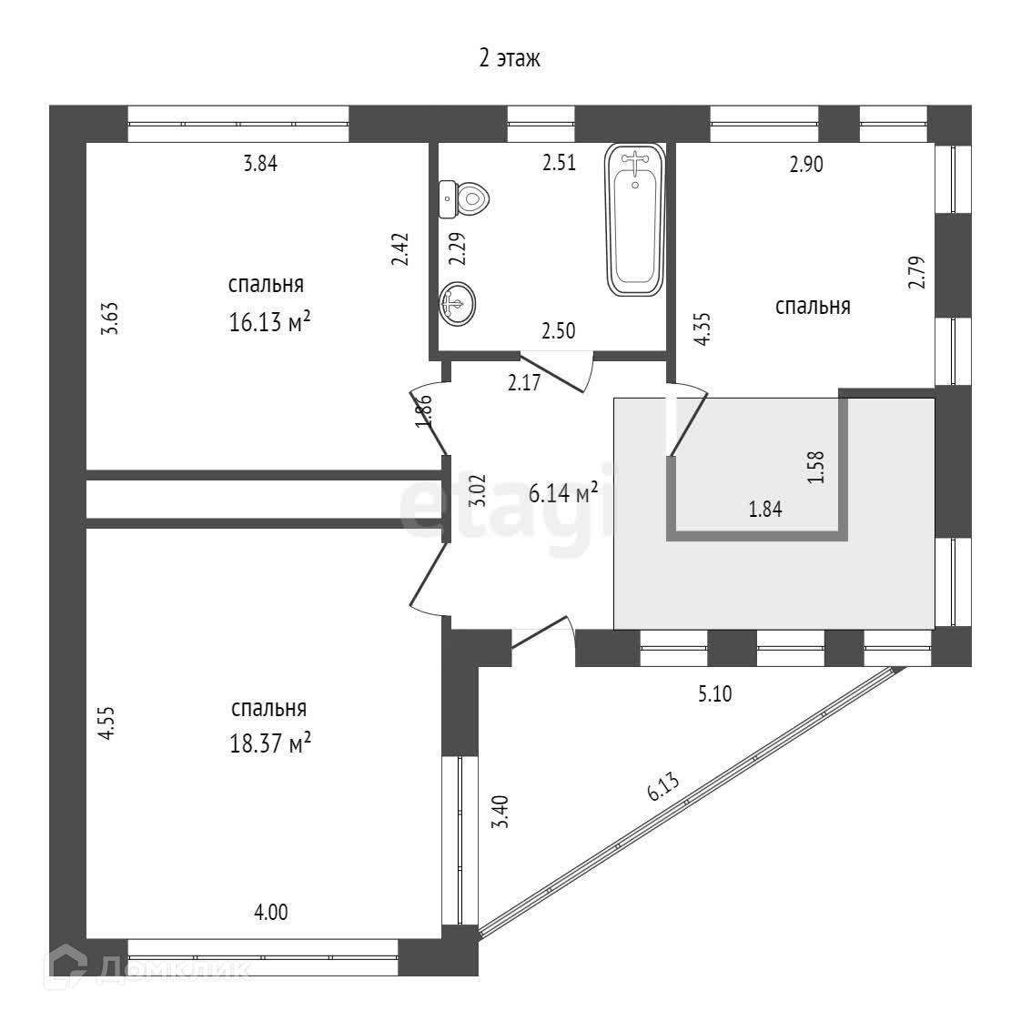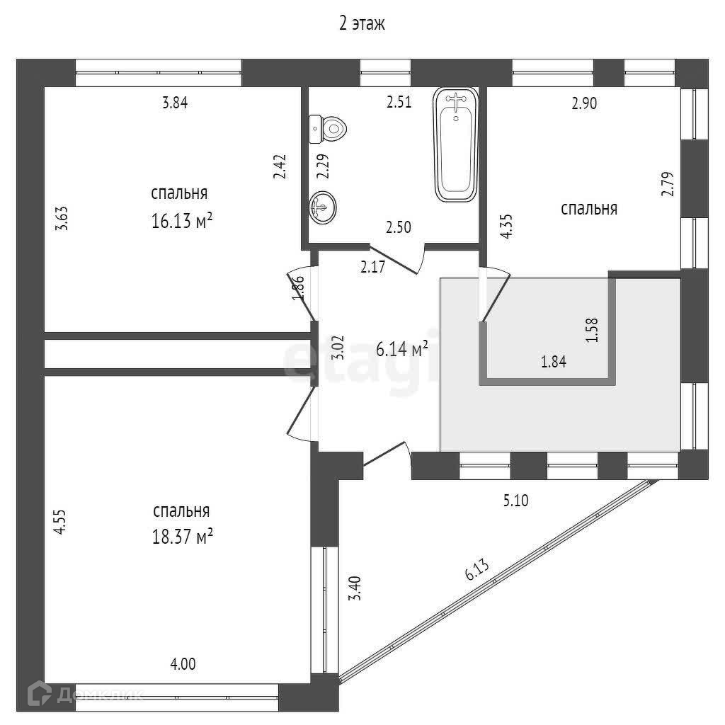 На 2 этаже расположены: санузел, 3 спальни и дополнительные места под гардероб.
