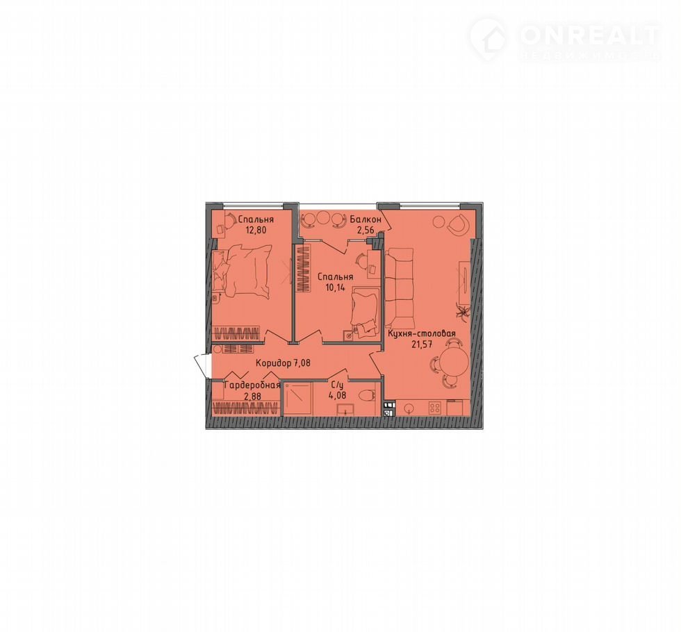 Общая площадь 59.3 м2