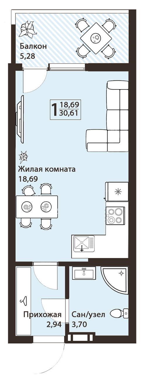 Общая площадь 30.6 м2