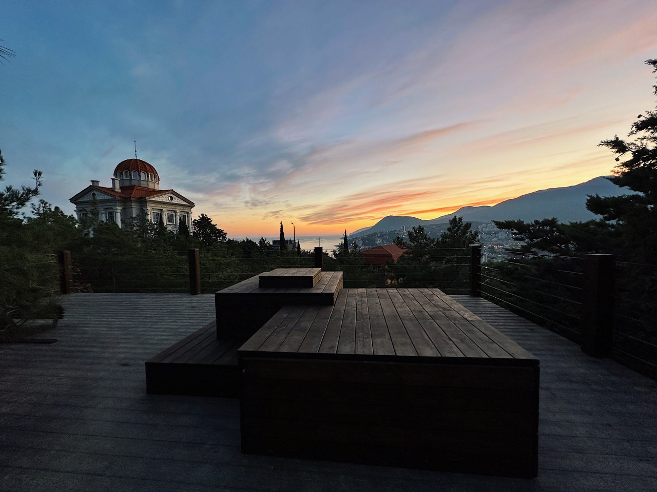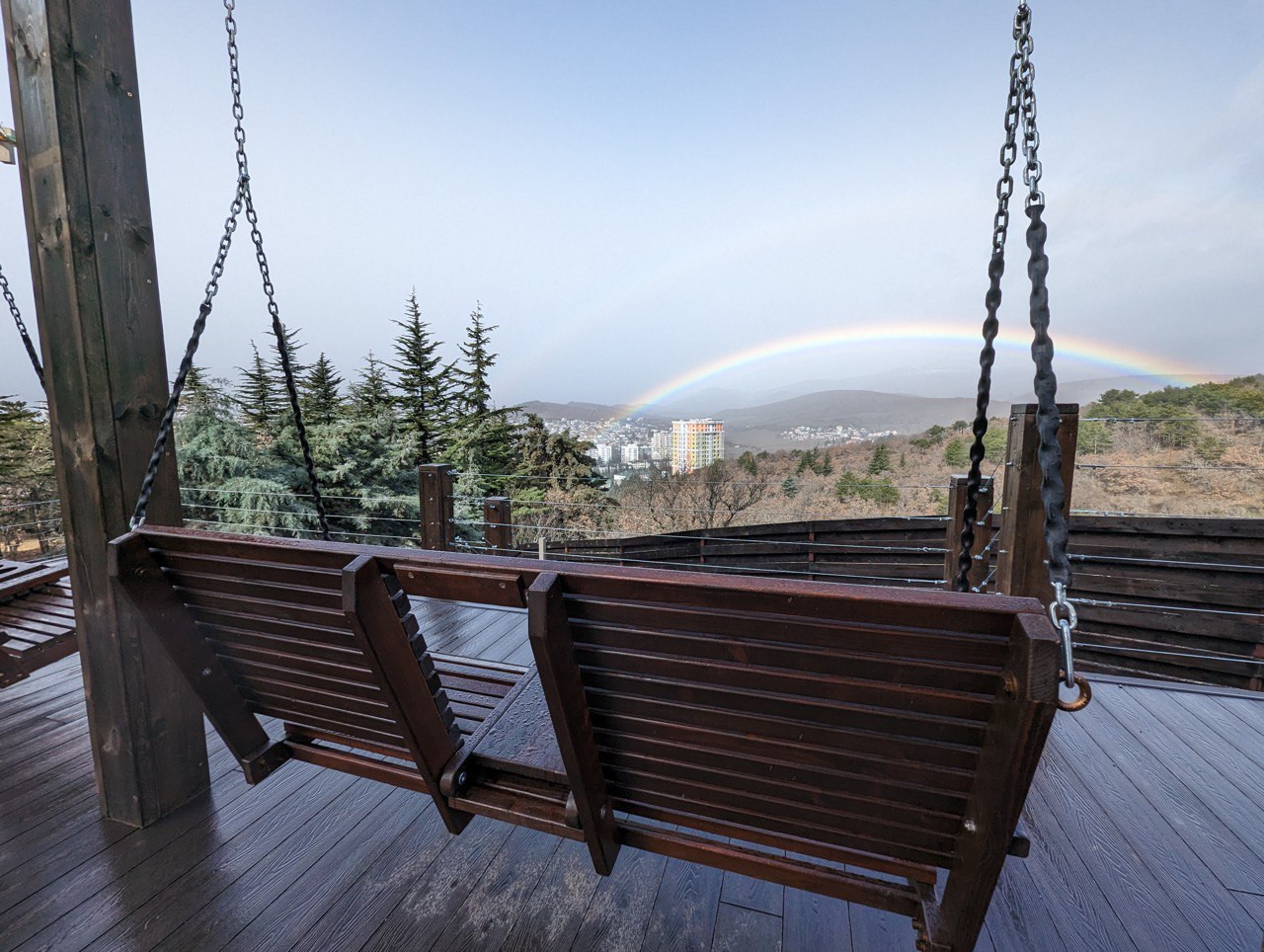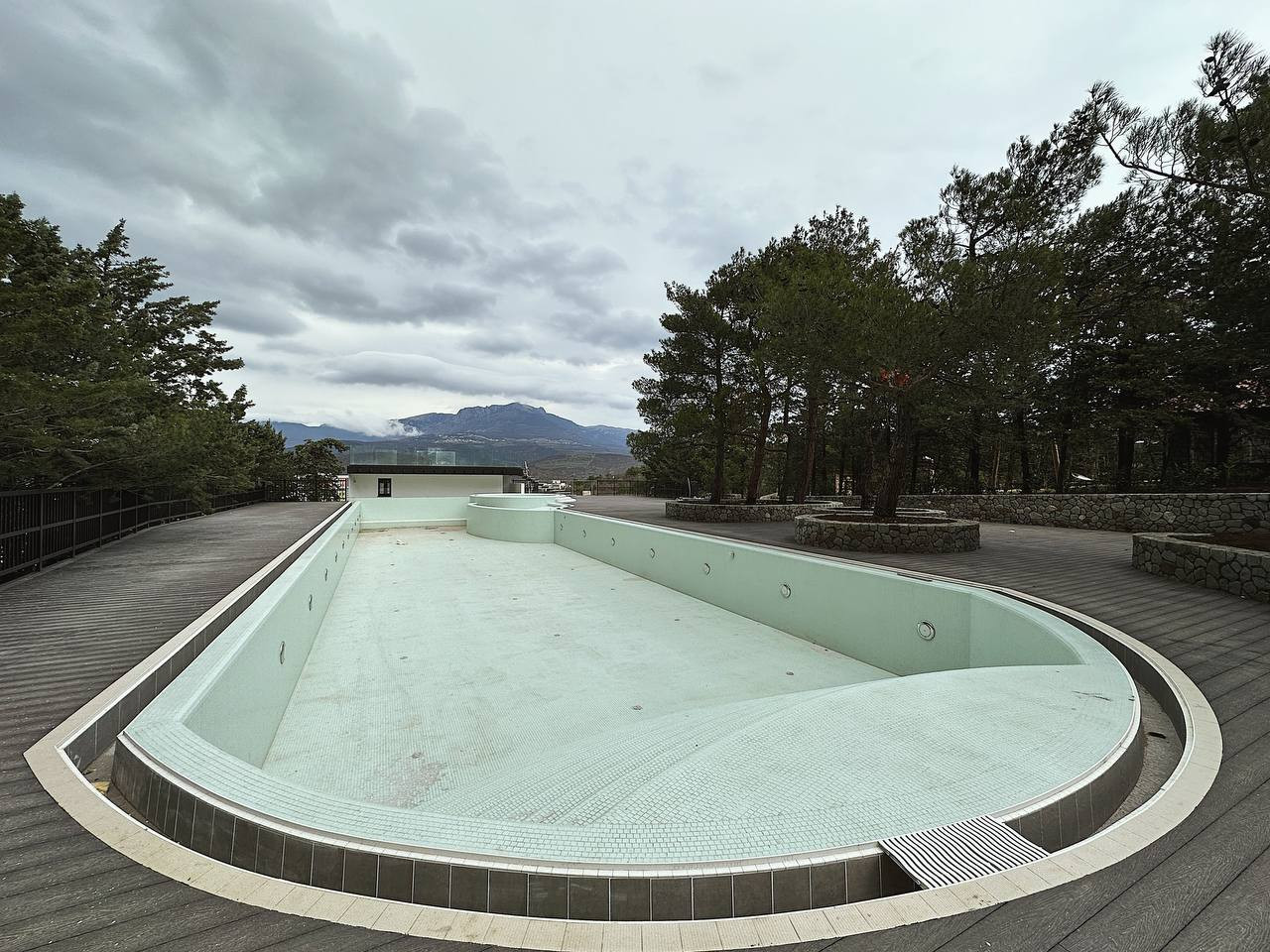• открытый бассейн среди хвойных деревьев;
