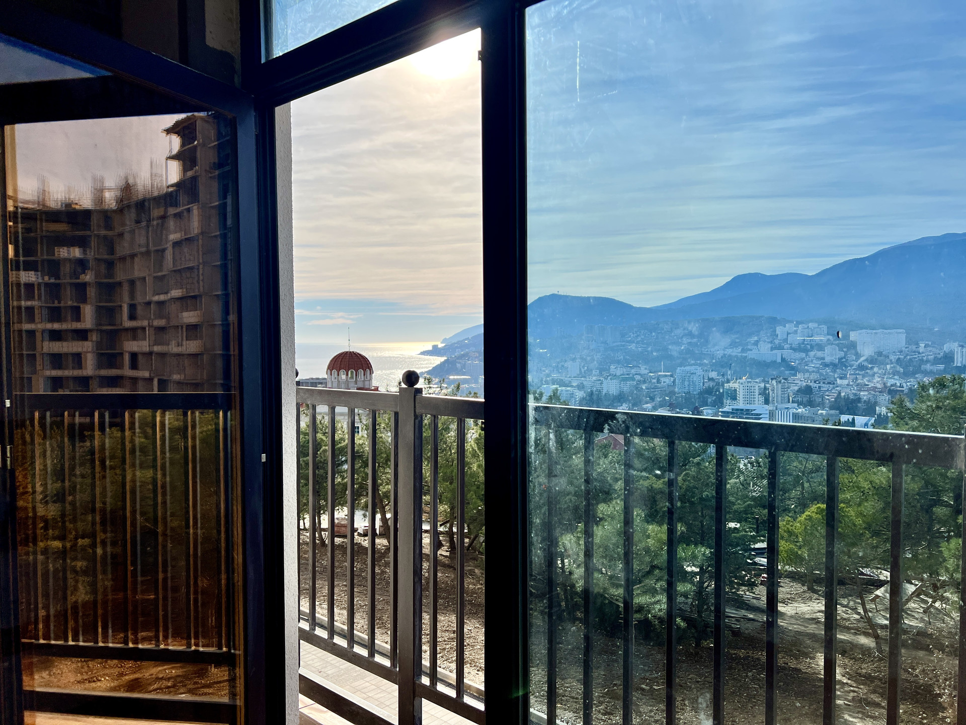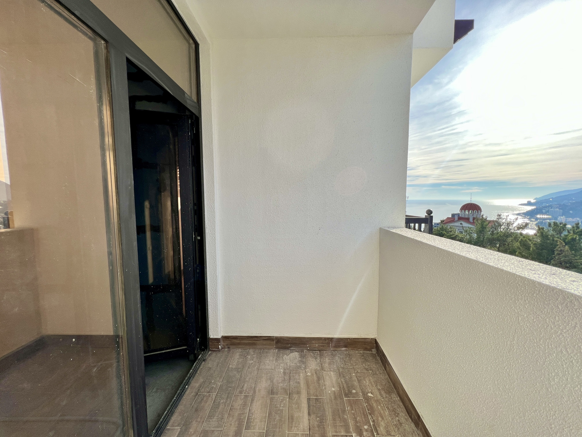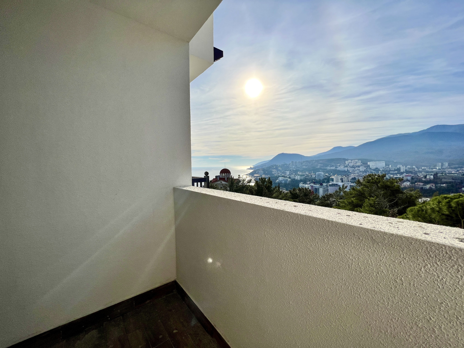 Обе комнаты выходят на южную сторону Черноморского побережья и имеют не перекрываемый вид на море и город, за счет удачного расположения в крайнем подъезде.
