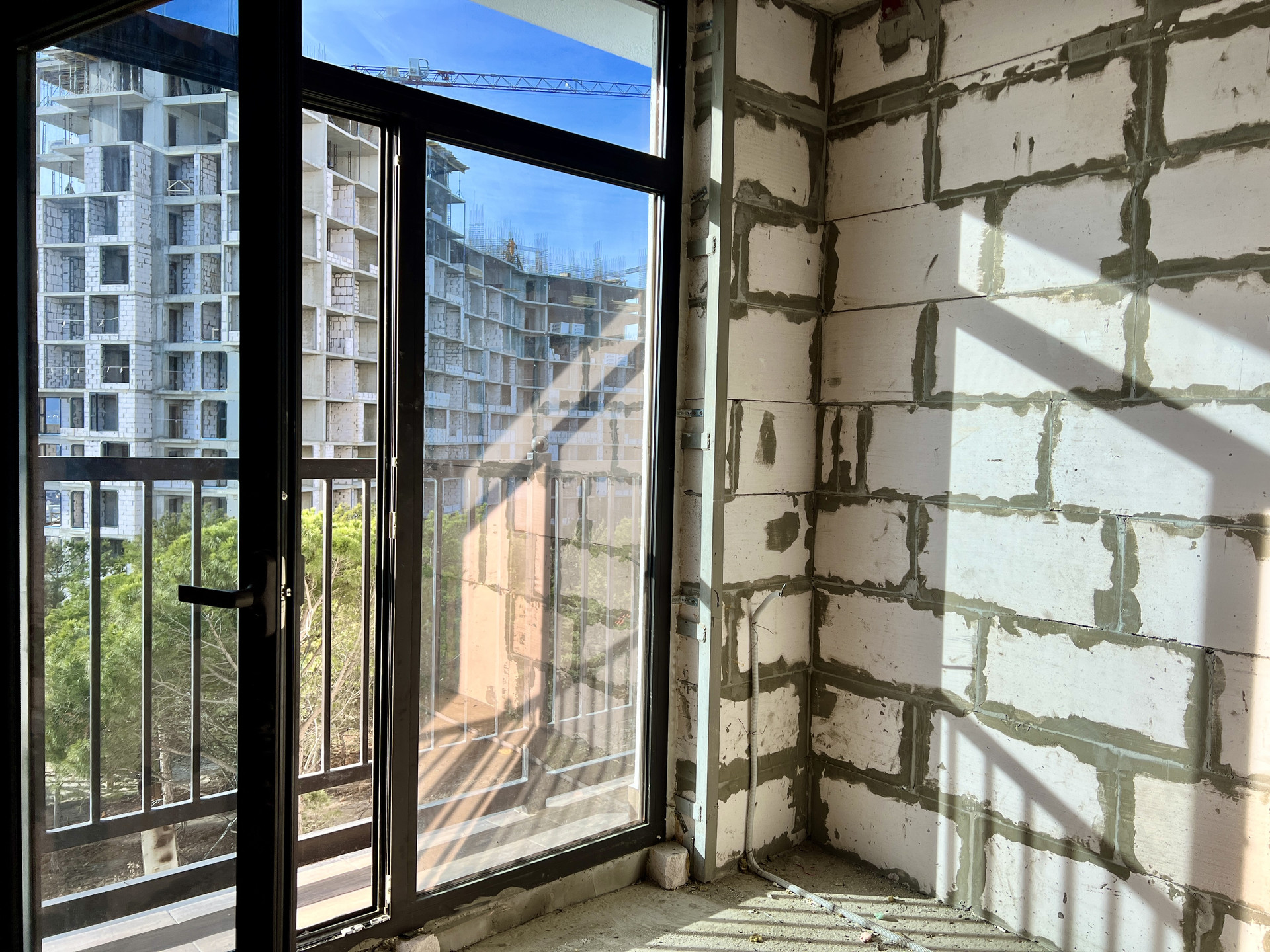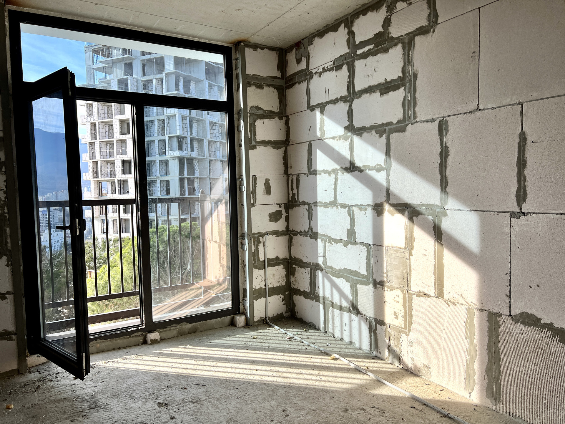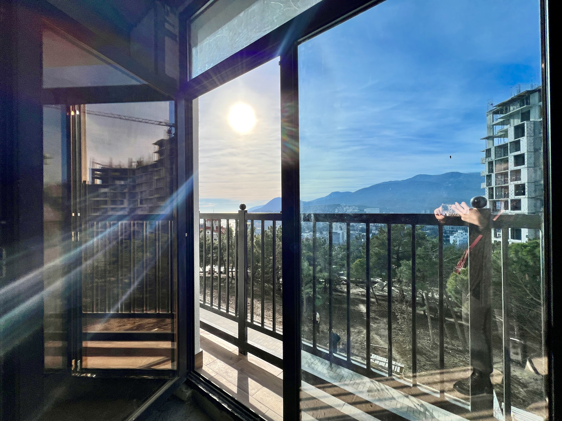 Обе комнаты выходят на южную сторону Черноморского побережья и имеют не перекрываемый вид на море и город, за счет удачного расположения в крайнем подъезде.