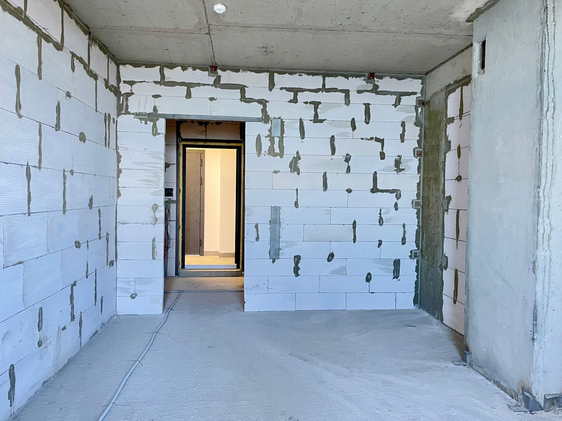 - Квартира без отделки, стены и перегородки из газобетонных блоков, перекрытия - монолитные железобетонные.