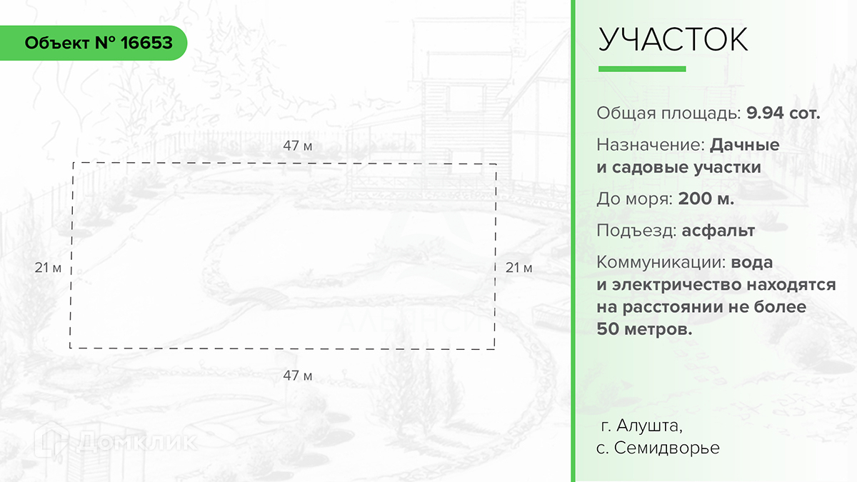 Хорошая локация: не далеко от моря – всего лишь 200 метров, 7 минут до города Алушта на машине.