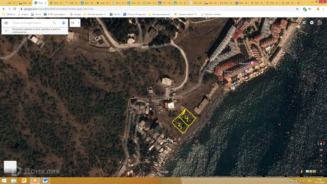 ID в ИМЛС: 17035342 Продается два смежных земельных участка общей площадью 20 соток (по 10 соток каждый)  на берегу Черного моря  по адресу: Республика Крым,  г.о. Алушта,  п. Семидворье, пер. Солнечный, 3 и 4.