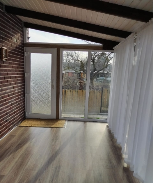 Современный одноэтажный, построенный с керамзитобетонных блоков, утепленный пеноплексом и облицован керамокирпичем. В доме удобная планировка: две спальные комнаты, кухня - гостиная, гардеробная, прихожая, котельная, совмещенный сан. узел. Сделан евроремонт, установлены сплит системы, натяжные потолки, качественные пластиковые окна, качественная входная дверь "с терморазрывом", система вентиляции.