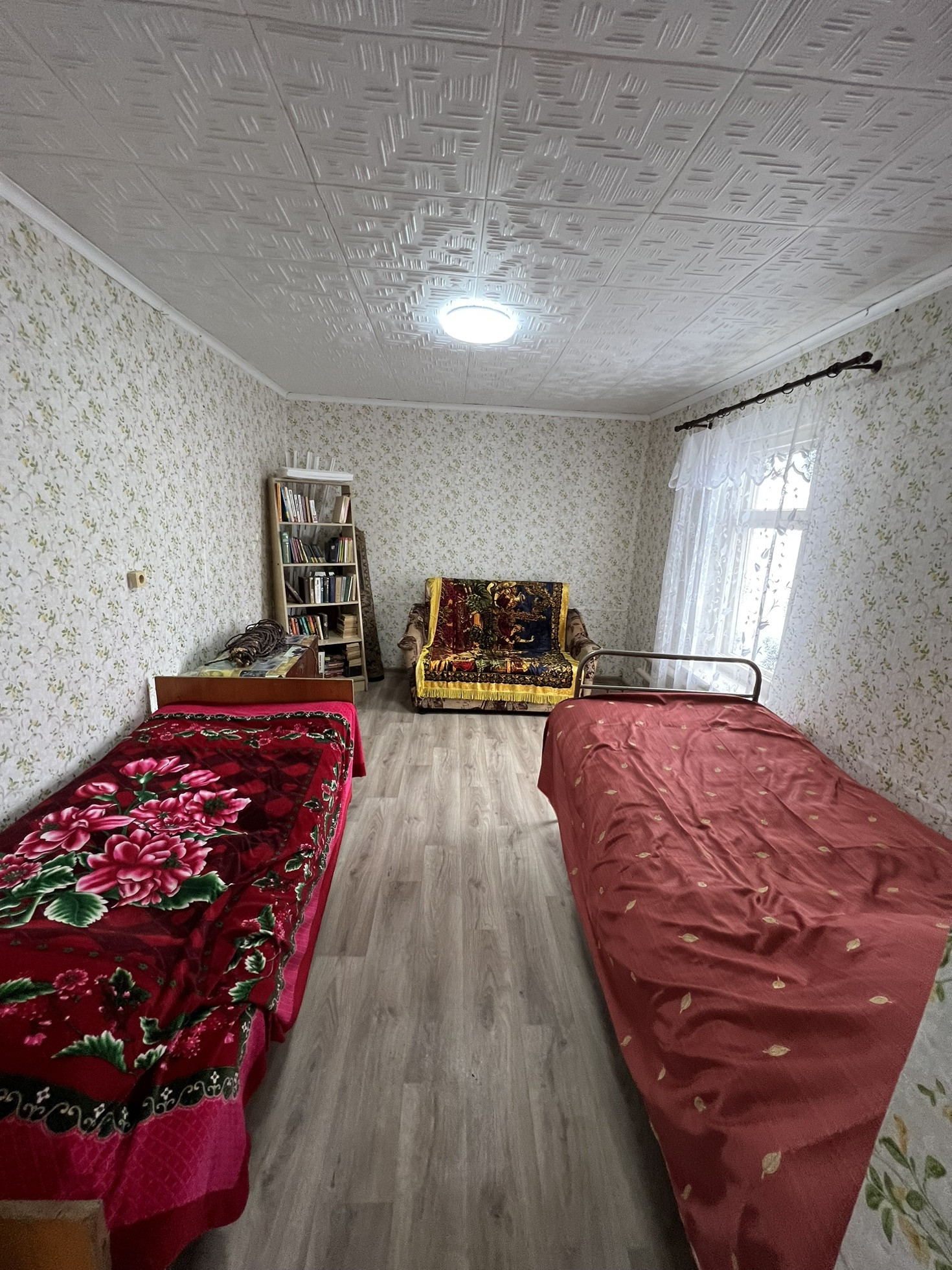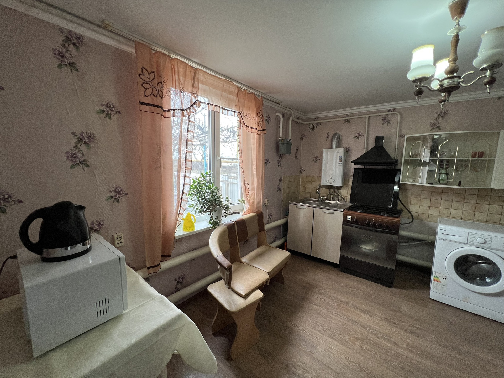 2-х комнатная квартира. Площадь 27,8 м2. Квартира очень теплая, высокие потолки. В квартире находится кухня, ванная комната, прихожая, зал, спальня. Установлен кондиционер, телевизор, бытовая техника. На приусадебном участке находятся 2 комнаты для отдыхающих, в комнаты подведены: газ и вода. Также есть баня в недостроенном состоянии, участок под строительство, подвал, ухоженный огород.