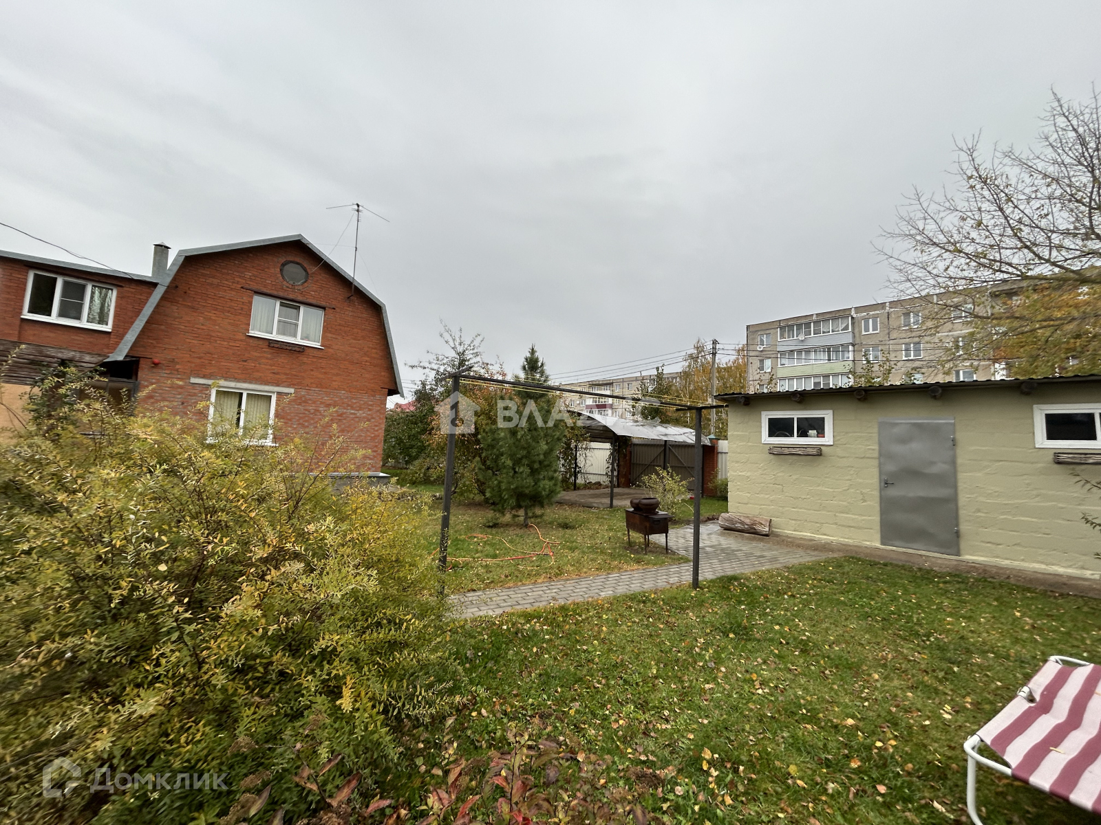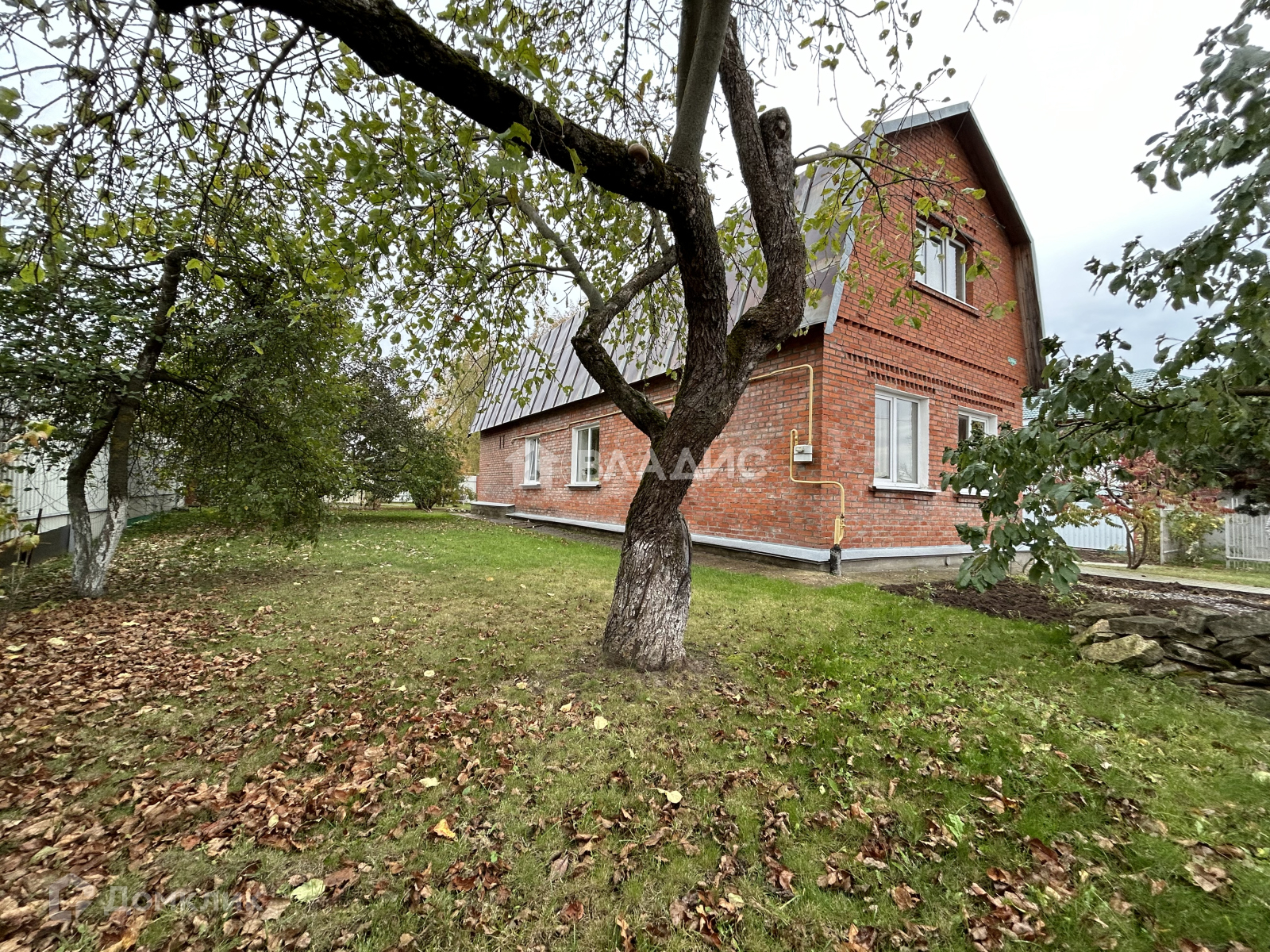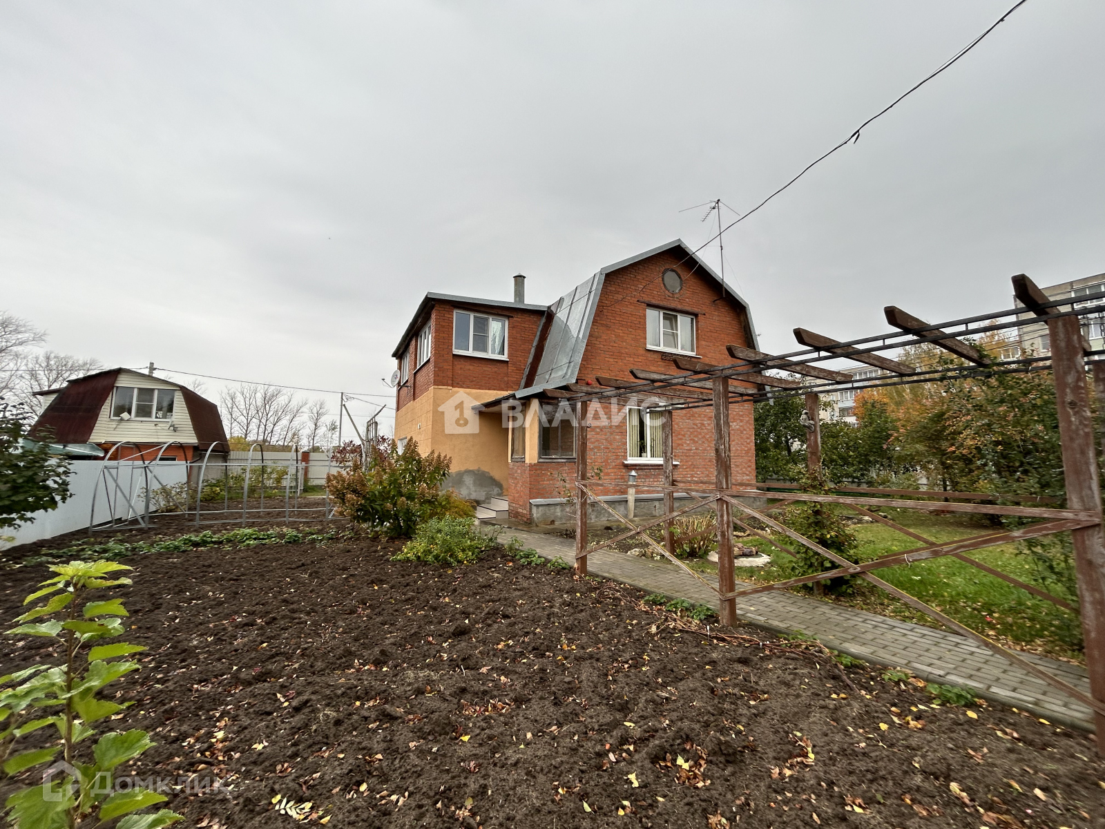 На участке достаточное количество плодовых деревьев, а также декоративных и плодовых кустарников. Есть зона для огорода и зона отдыха с качелями и мангалом.