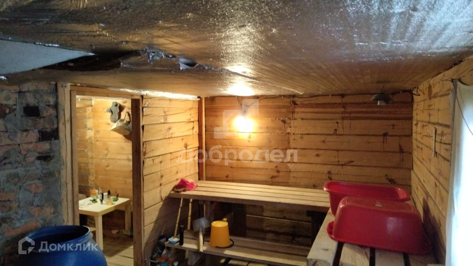 - На участке есть большая баня. 2 отделения, первое комната отдыха, второе отделение и парилка и мойка (возможно разделение). Печь новая.